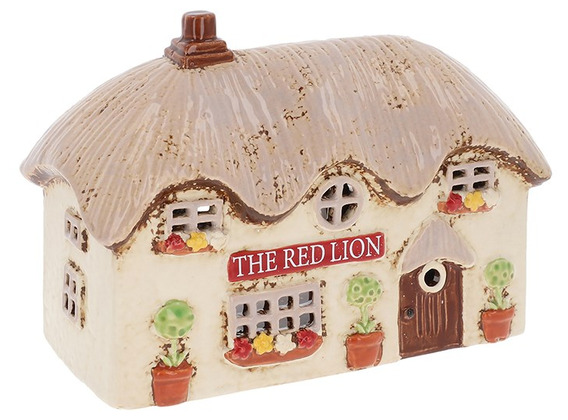 Skapa varm och hemtrevlig stämning med denna charmiga ljuslykta i form av det mysiga huset The Red Lion. Placera ett värmeljus inuti och se hur de små fönstren lyser upp rummet med ett mjukt, inbjudande sken.