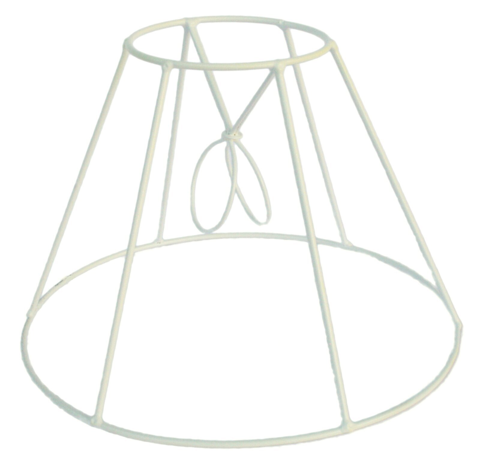 Lampskärmsstommen har en klassisk, konisk form som ger ett tidlöst intryck. Den består av tunna, sammanhängande metallstänger, utformade för att stödja ett tygvalfritt av användaren. Metallens finish är ljus och neutral, vilket gör den lätt att matcha med olika färger och material. Ovanpå stommen, precis i mitten, finns en mindre rund ram som är något mindre än basens omkrets, och dessa delar är förbundna med vertikala stag.