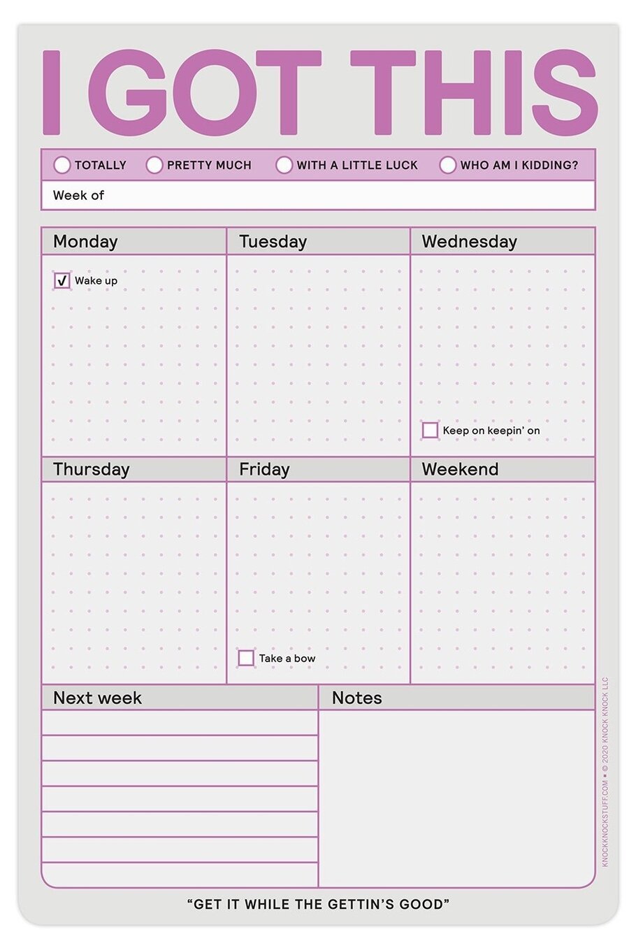 Planera in veckans göra & inte göra med detta praktiska pappersblock med 60 ark. Från KnockKnock.