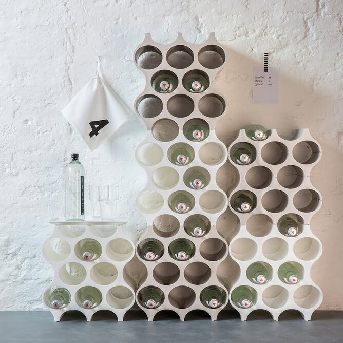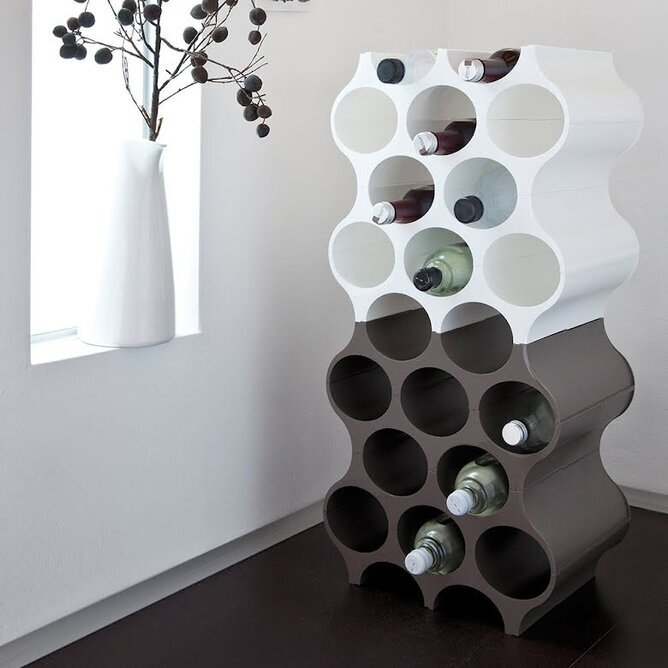 Dekorativt vinställ med plats för 10 flaskor, kan utökas genom att stapla fler sektioner på varandra & byggas ut både på höjd & bredd. Vinstället kan även användas till förvaring av hoprullade handdukar i badrummet eller som tidningsställ med hoprullade tidningar & magasin.