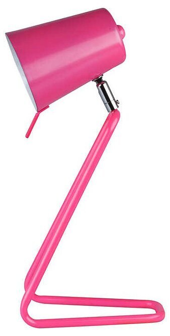 Fästet där skärmen möter foten är av metall och glänser i en silverliknande nyans, vilket skapar en subtil kontrast mot den dominerande rosa färgen. Detta fäste är inte bara en estetisk detalj utan bidrar också till lampans funktionalitet genom sin rörlighet. Den ger möjligheten att justera skärmens lutning, vilket är praktiskt för läsning eller arbetsbelysning.