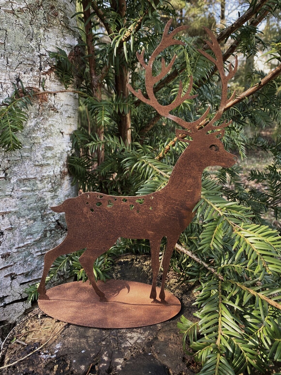Dekoration - Hjort på fot i rostfinish, kan användas både inne- som utomhus. Från Lind Decoration.