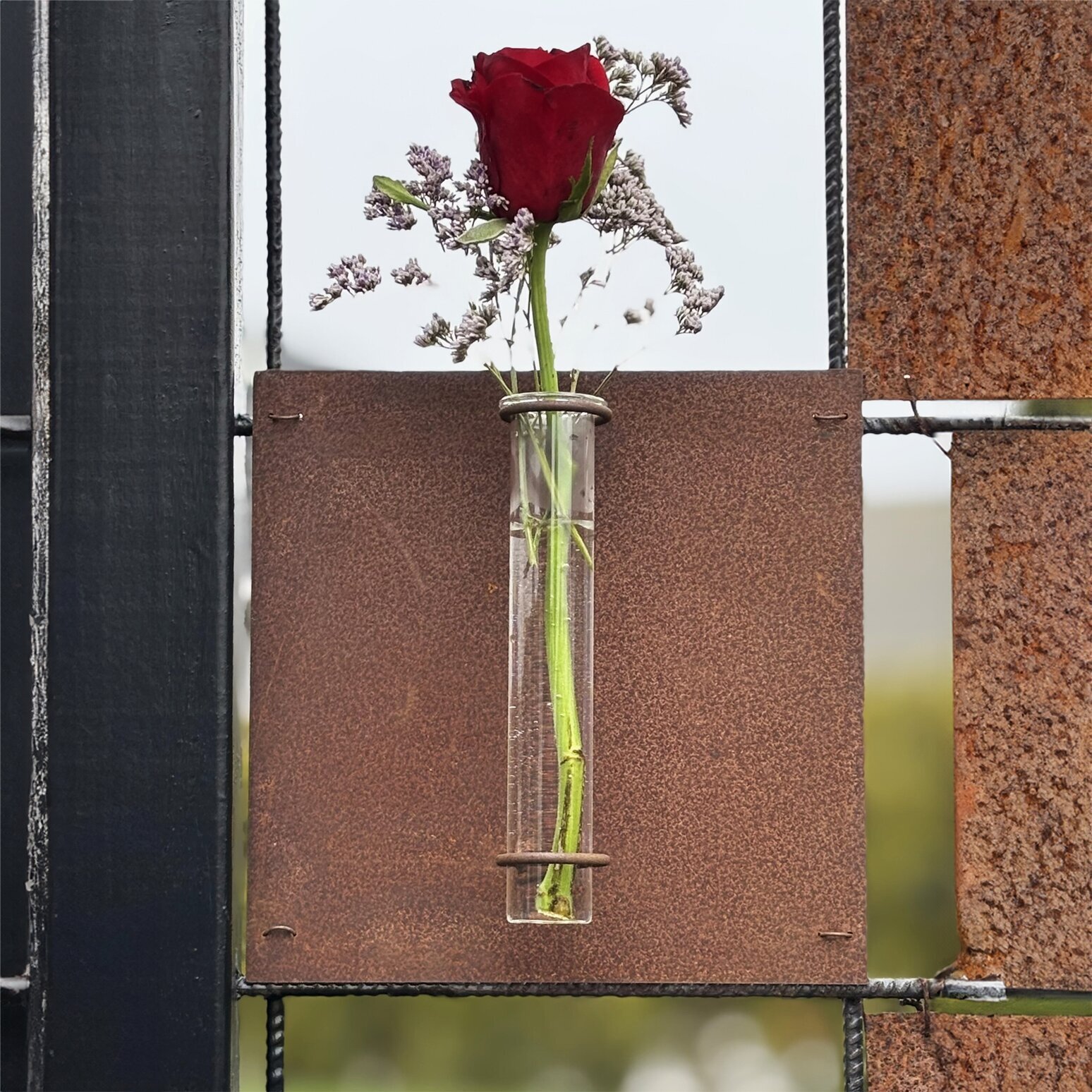 Ge din trädgård eller uteplats en extra touch av charm med denna smakfulla vas, perfekt anpassad för att hängas på armeringsnät. Baksidan är designad för att sitta stadigt på utsidan av nätet, vilket gör att vasen hänger stabilt och snyggt.