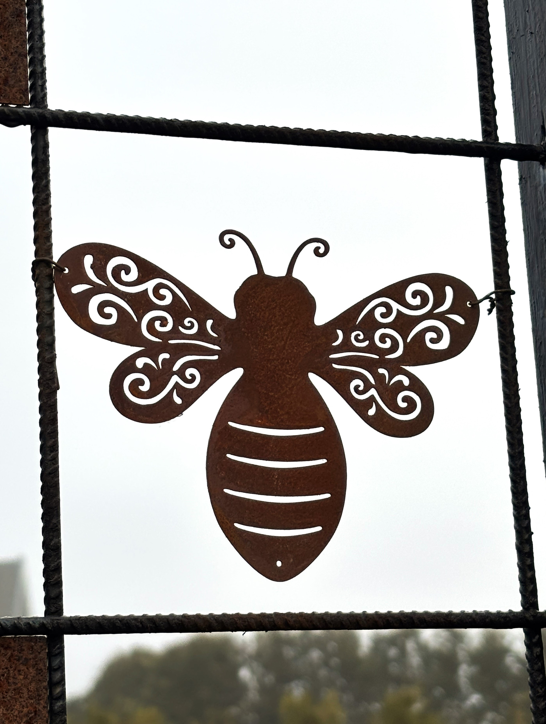 Dekorativ skylt i rostfinish som kan placeras med medföljande ståltråd på bl a armeringsnät. En fin detalj i trädgården. Passar till armeringsjärn storlek 15 x 15 cm.