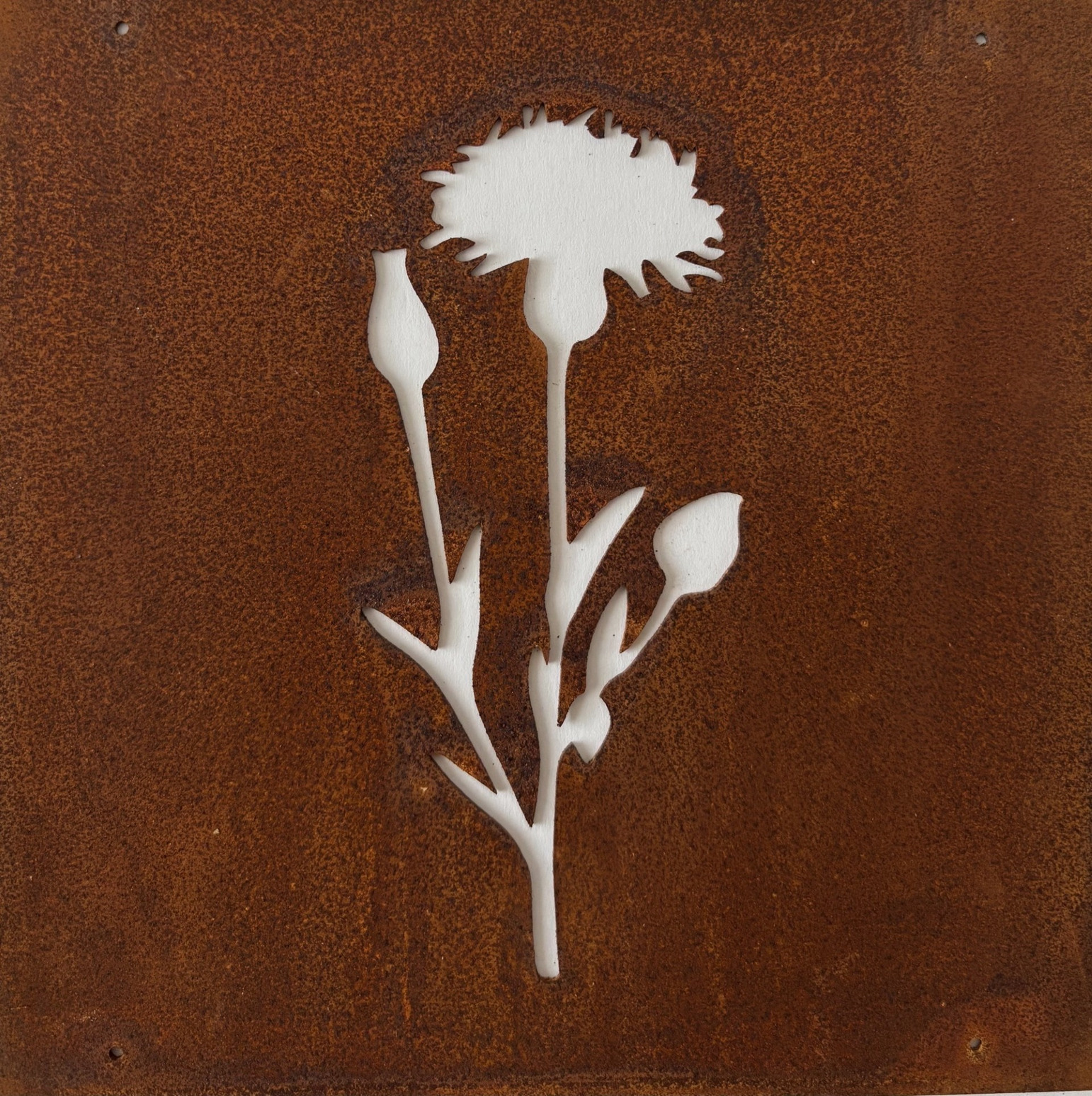 Dekorativ skylt i rostfinish som kan placeras med medföljande ståltråd på bl a armeringsnät. En fin detalj i trädgården. Passar till armeringsjärn storlek 15 x 15 cm.