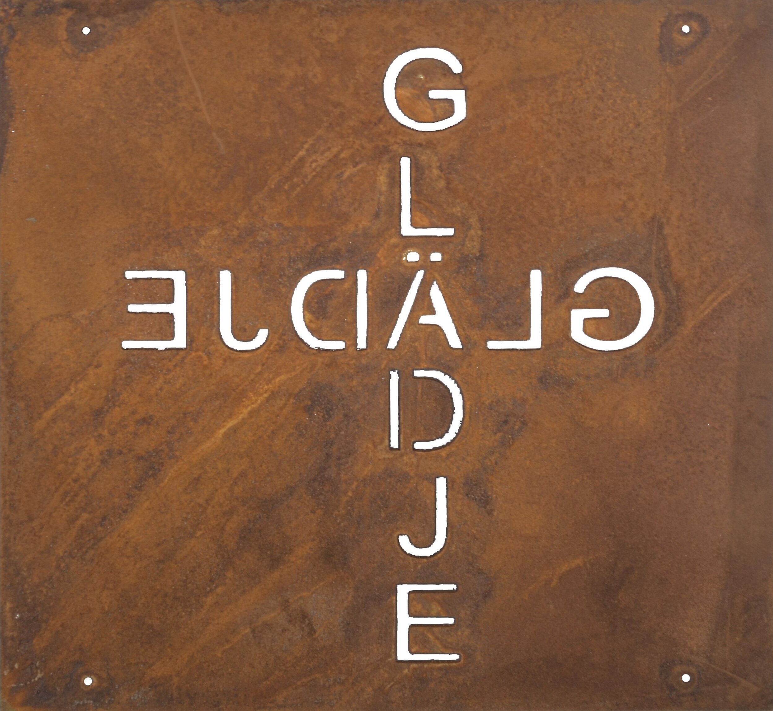 Dekorativ skylt i rostfinish som kan placeras med medföljande ståltråd på bl a armeringsnät. En fin detalj i trädgården. Passar till armeringsjärn storlek 15 x 15 cm.