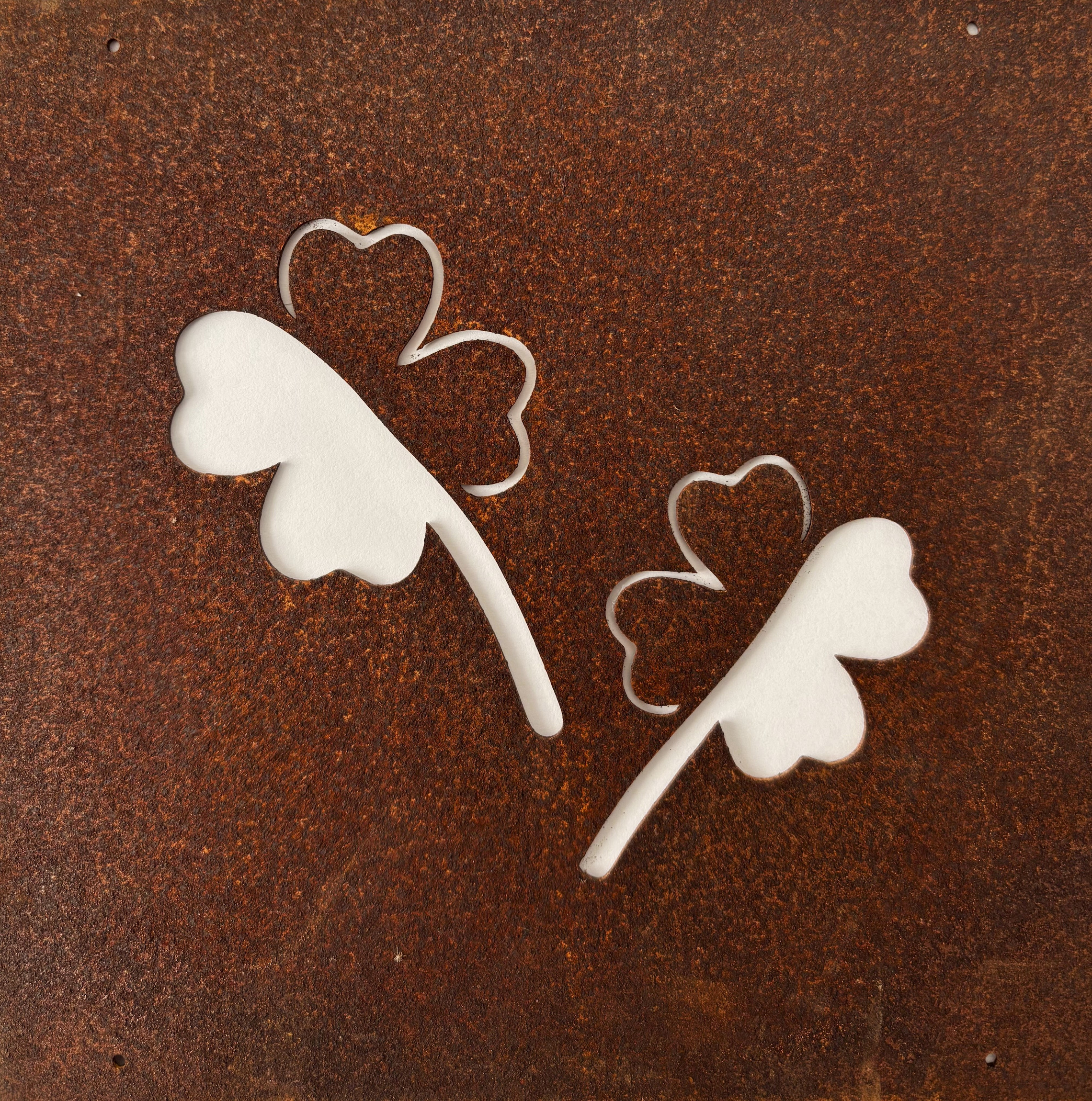 Dekorativ skylt i rostfinish som kan placeras med medföljande ståltråd på bl a armeringsnät. En fin detalj i trädgården. Passar till armeringsjärn storlek 15 x 15 cm.