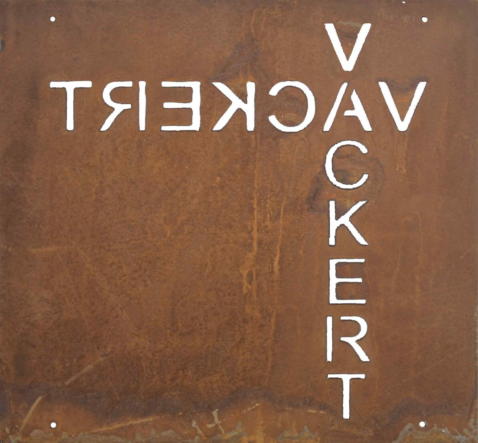 Dekorativ skylt i rostfinish som kan placeras med medföljande ståltråd på bl a armeringsnät. En fin detalj i trädgården. Passar till armeringsjärn storlek 15 x 15 cm.