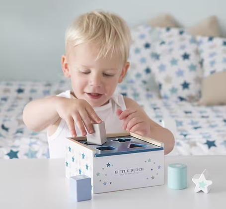 Klossbox till de mindre barnen för att förutom leka även öva upp sin finmotorik. Inkl 4 stycken klossar. Material: Trä. Rekommenderad ålder: + 18 månader