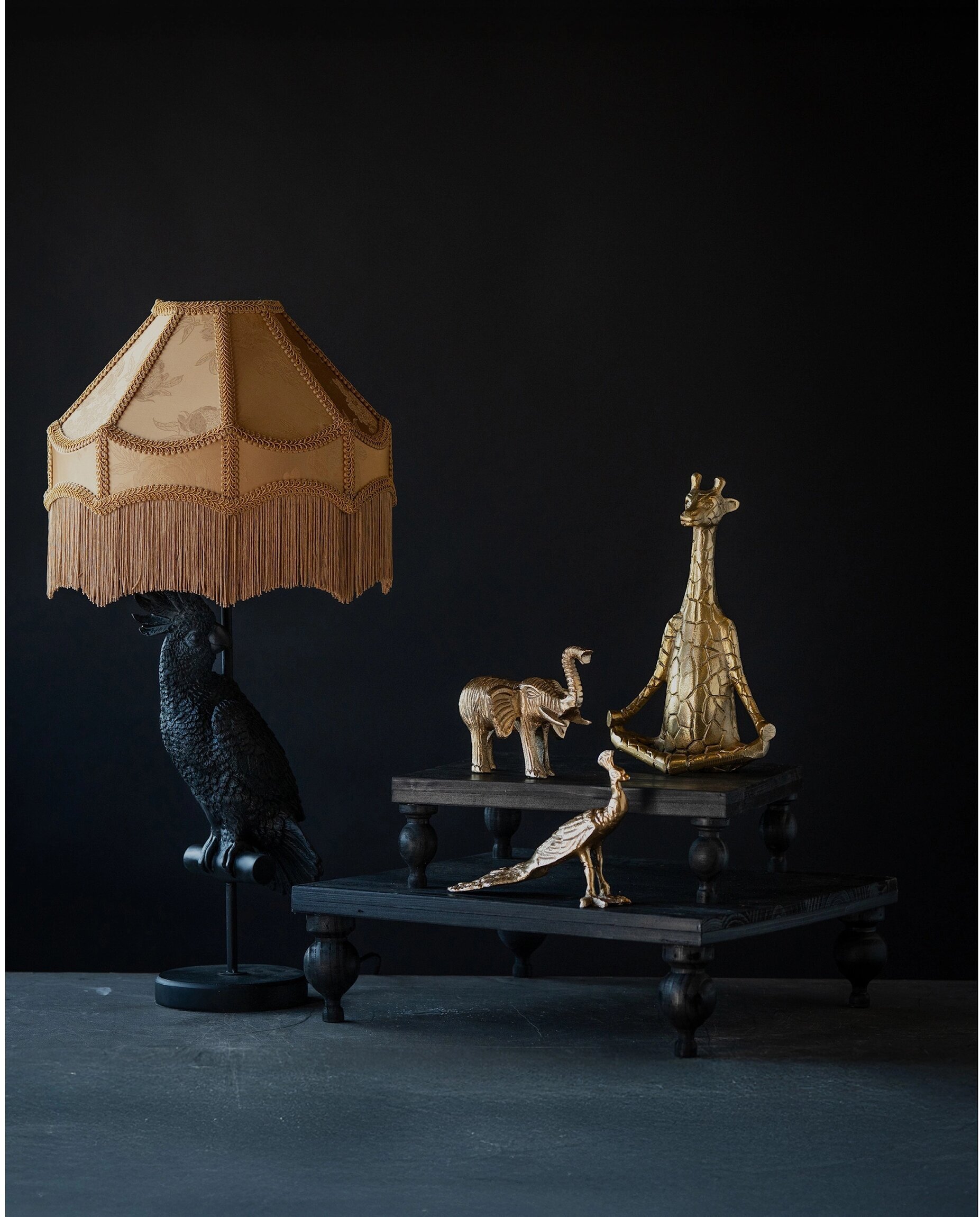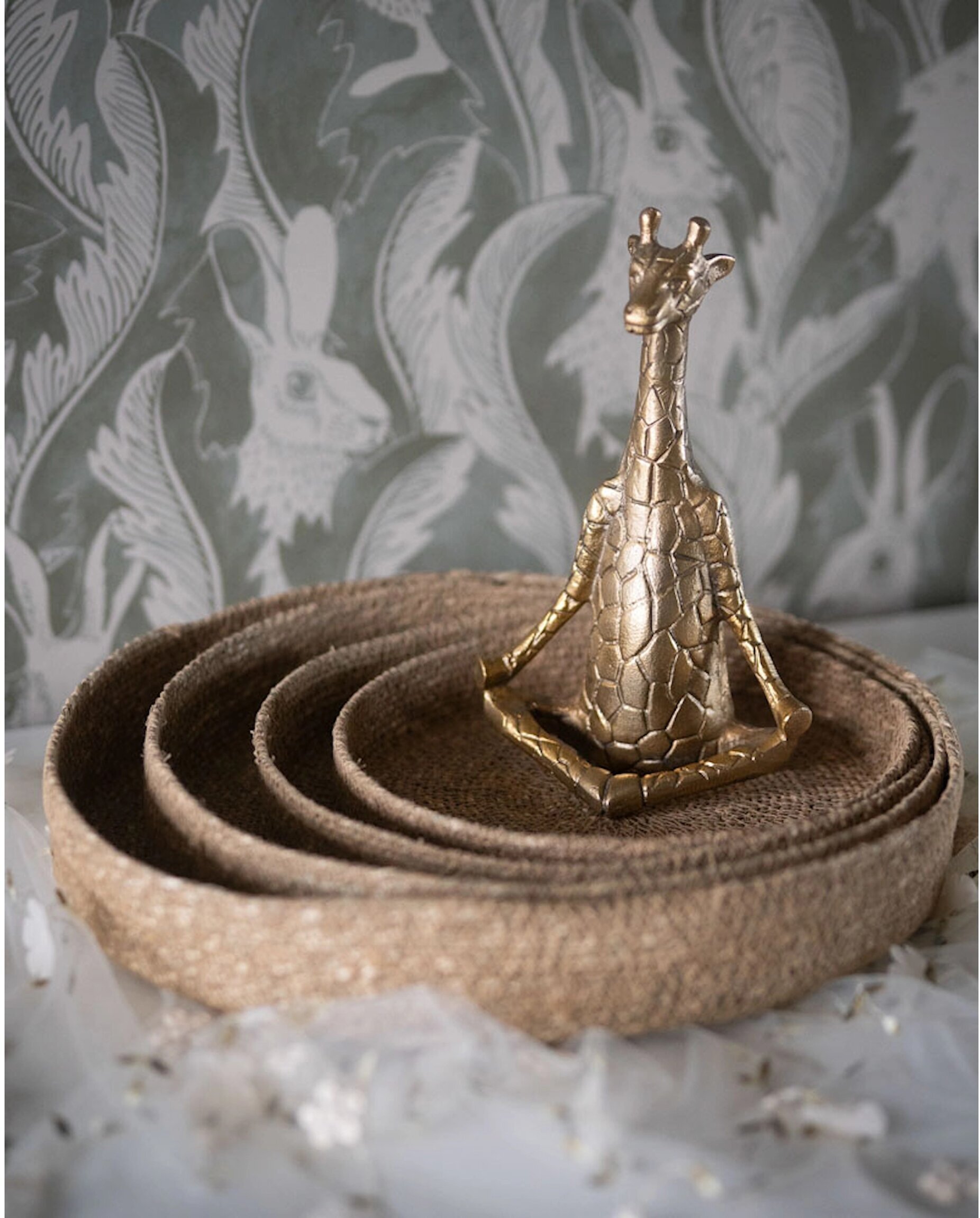 En charmig och lekfull dekoration i form av en giraff i en lugn yogaposition. Den gyllene finishen tillsammans med de fina detaljerna i mönstret ger figuren ett elegant och samtidigt humoristiskt uttryck.