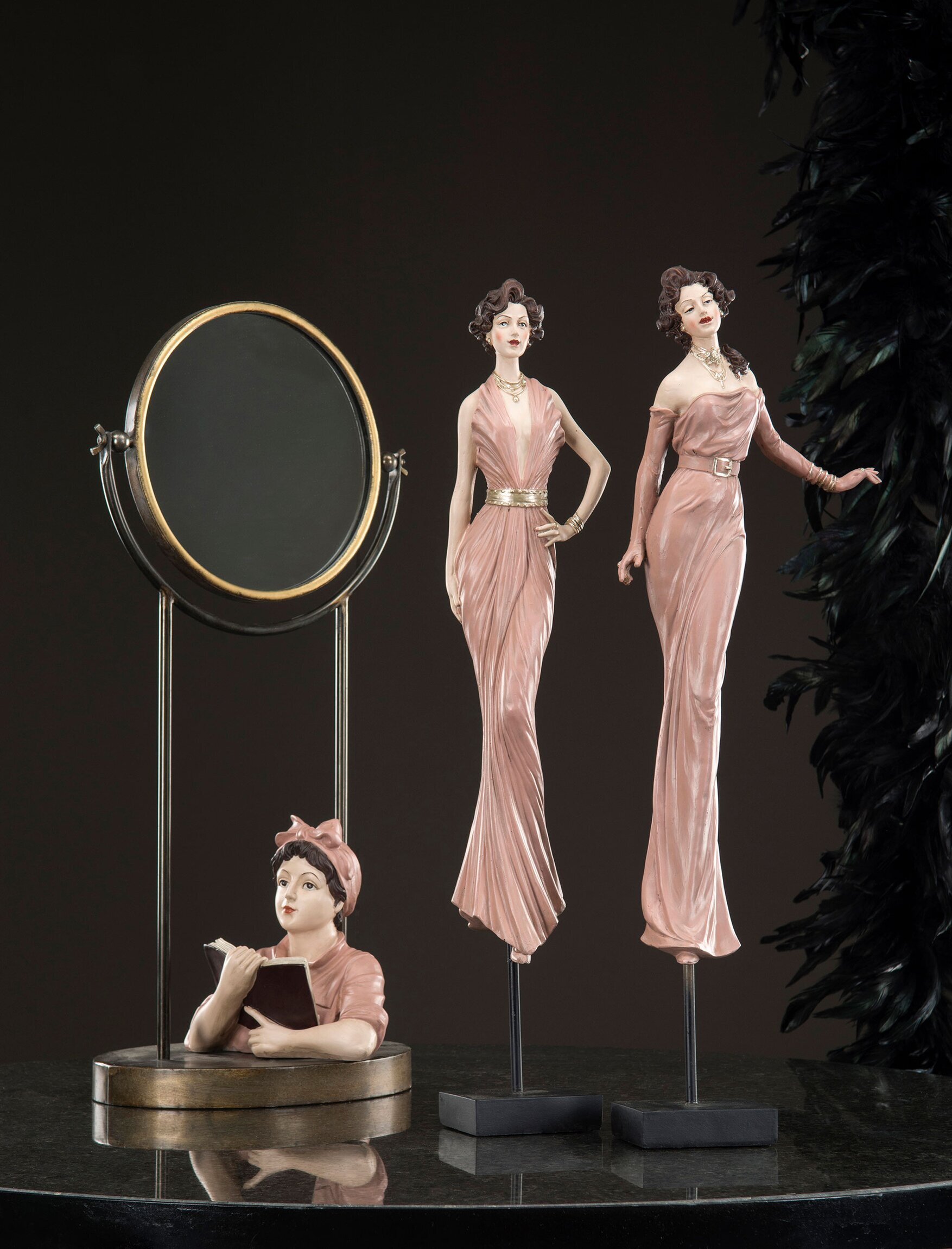 Dekorativ inredningsdetalj, eleganta kvinnor i vackra klänningar från 20-talet. Finns i 2 stycken olika varianter. De dekorativa kvinnorna är tillverkade för hand & det kan därmed förkomma variationer på färg, form & utseende.