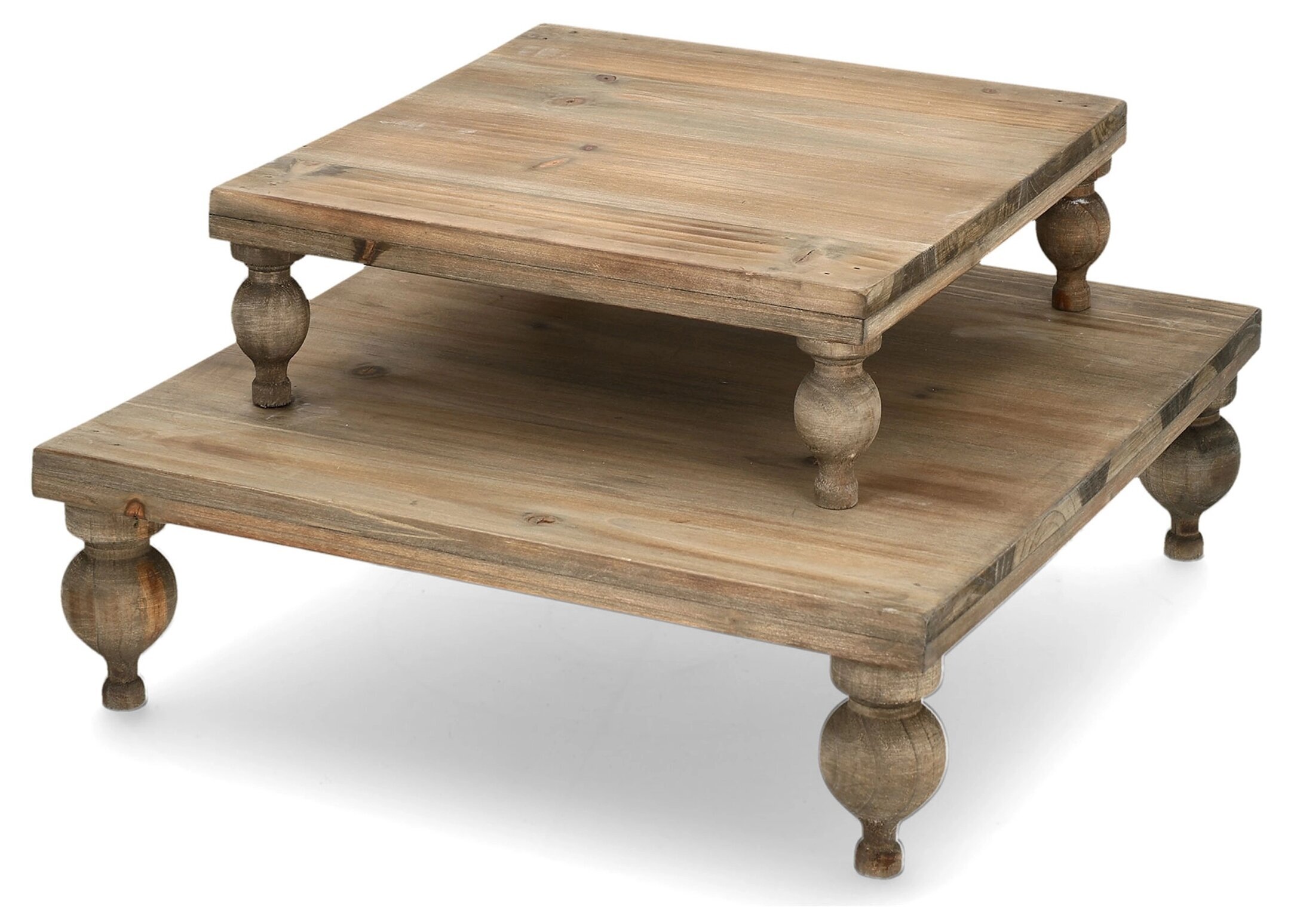 Den naturliga träytan ger en varm och rustik känsla som gör podierna lika användbara i köket som i vardagsrummet eller uterummet. Använd dem tillsammans eller var för sig för en flexibel inredningsdetalj.
