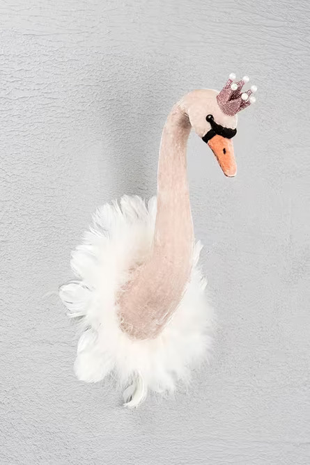 Fantastiskt vackert svanhuvud i creme/rosa för upphängning på vägg. Mått: 41 x 22 x 18 cm. Läs mer
