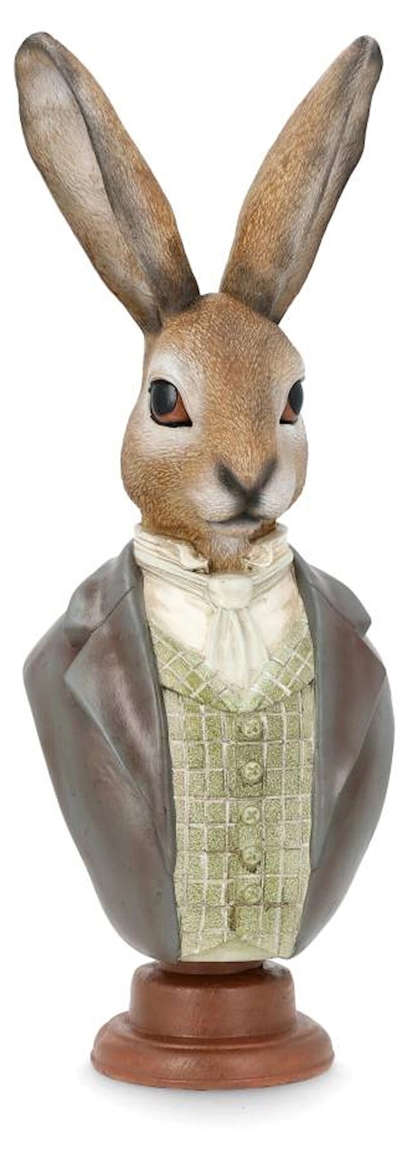 En elegant kaninbyst med tidlös charm. Klädd i kavaj och väst med fina detaljer blir denna figur en stilfull inredningsdetalj som kombinerar lekfullhet med klassisk känsla.