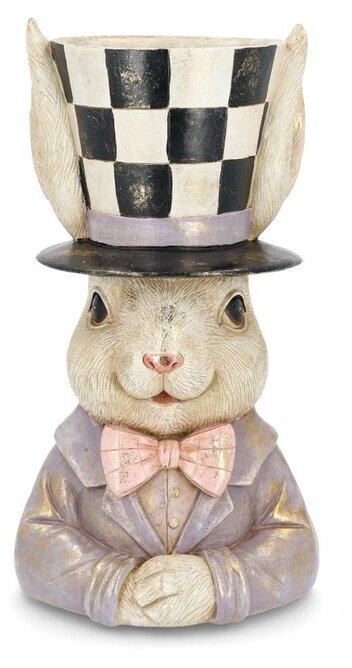 En lekfull och dekorativ byst i form av en kanin med hög hatt. De fina detaljerna och de mjuka färgerna ger ett charmigt uttryck som passar perfekt till påsk och vår.