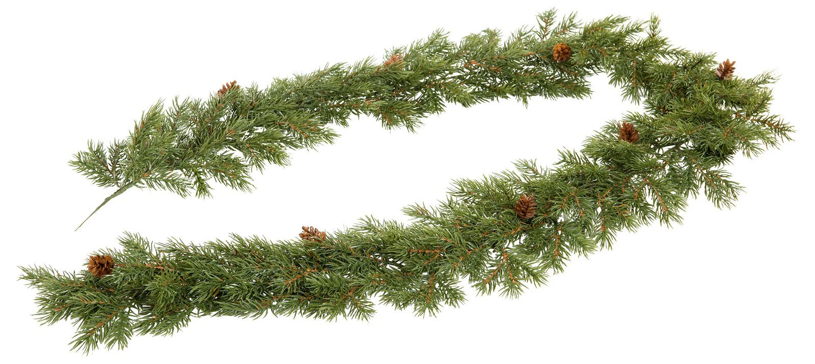 Mörkgrön konstgjord grangirlang fin att dekorera på bord, ljuskrona & spiselkrans. Läs mer