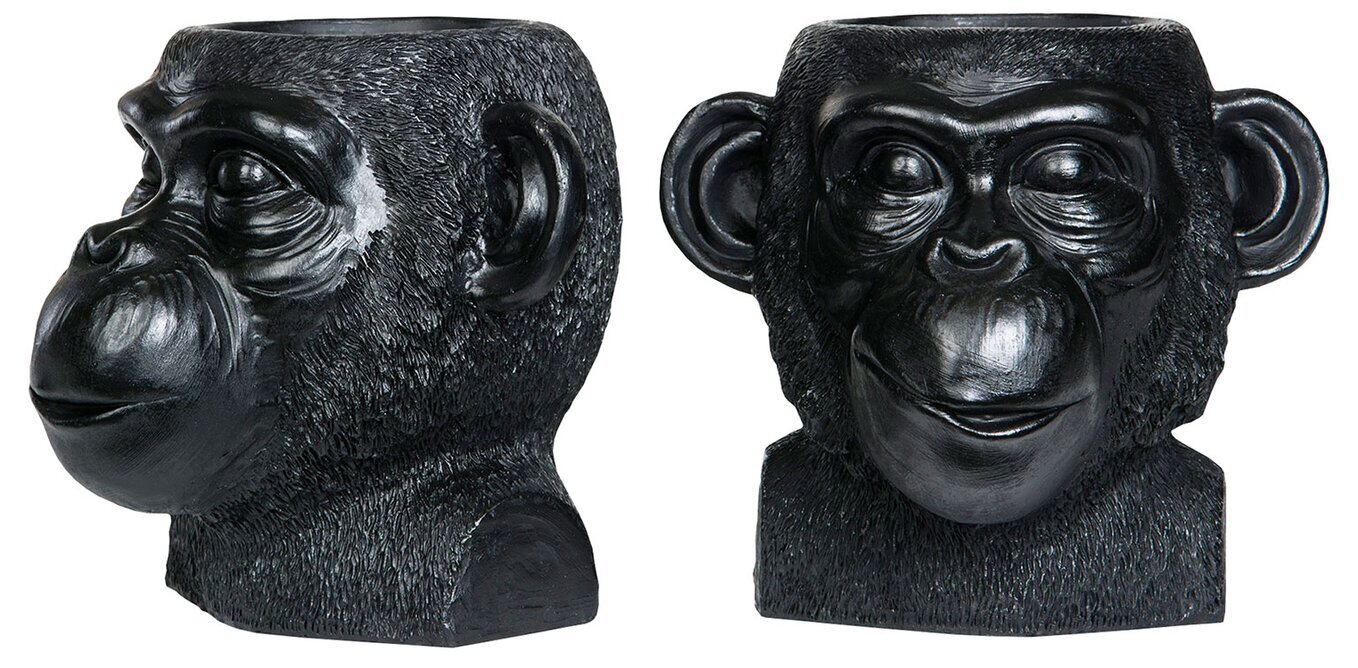 På bilden syns en unik och detaljrik kruka från varumärket A Lot Decoration, som finns tillgänglig hos Köpstaden.se. Denna produkt, vid namn Kruka Apa Kala Svart, pryds av en skulptur av ett apansikte. Krukan är formad som ett apans huvud med ett uttrycksfullt ansikte, vilket erbjuder en intressant och iögonfallande design. Krukan är gjord i ett djupt svart material som ger den en stilren och funktionell känsla.