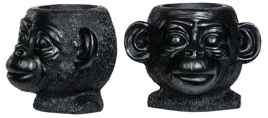 Bilden visar en distinkt kruka med ett designat motiv föreställande ett apansikte, tillhörande serien "Kruka Apa Kid Svart" från varumärket A Lot Decoration, och finns tillgänglig hos Köpstaden.se. Krukan är tillverkad i ett mörkt, glänsande material som ger det svarta ansiktet ett robust och samtidigt dekorativt utseende. Apans ansikte är noggrant utformat med uttalade drag såsom stora, välformade ögon och en tydligt definierad nos och mun. Ögonen verkar framträdande och väcker en känsla av nyfikenhet och lekfullhet, vilket ger föremålet en unik karaktär.