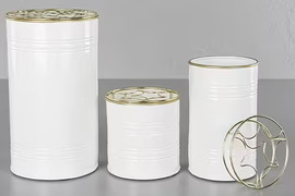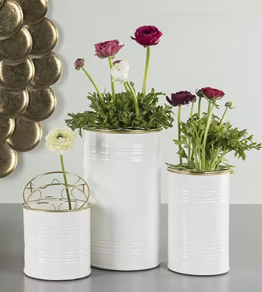 3 stycken vita vaser med guldlock för att skapa vackra blomsterarrangemang. Material: Emalj. Mått: 16 x 27 cm. Läs mer