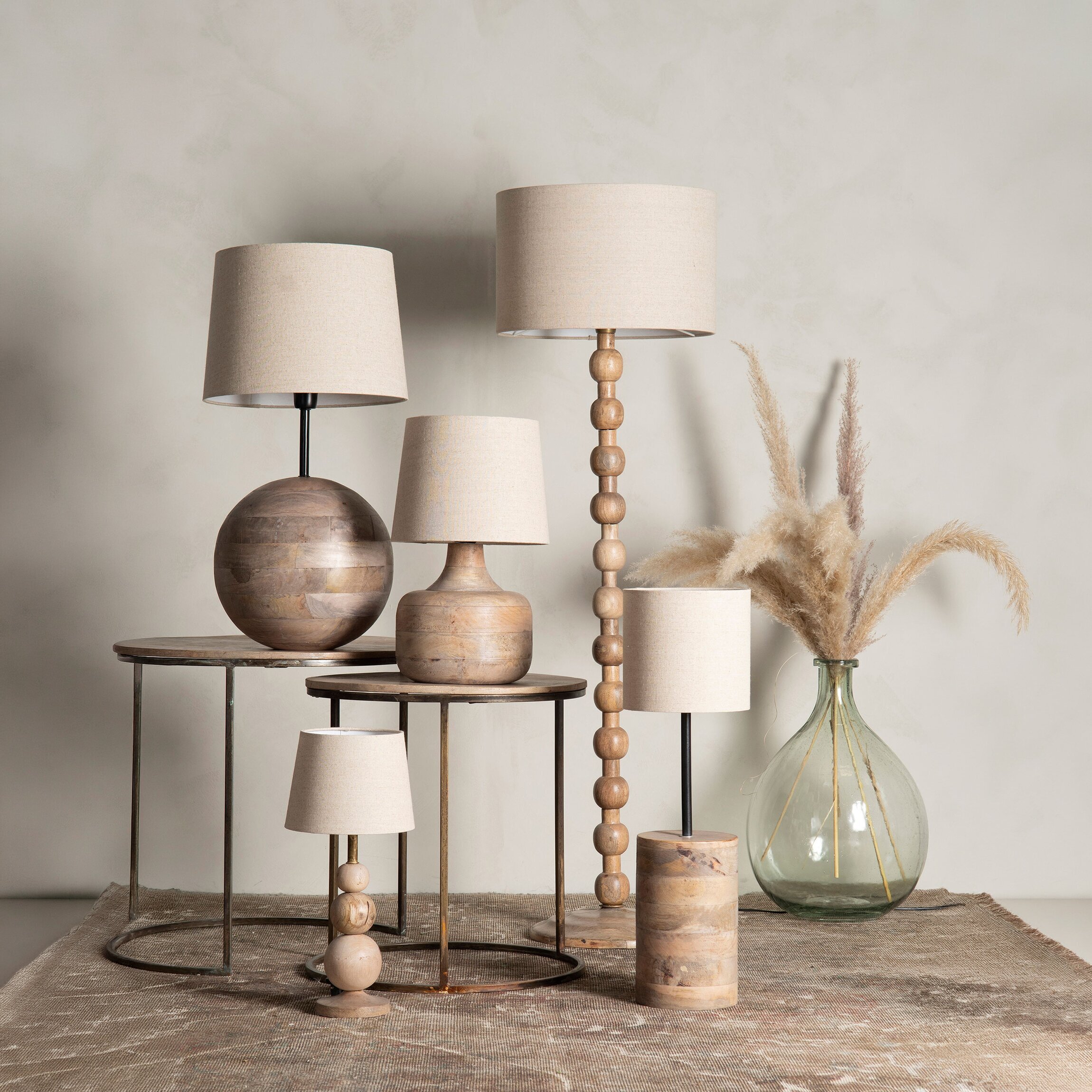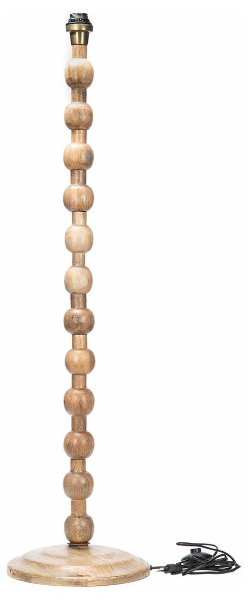 En stilren golvlampa med vackert svarvad fot i trä och dekorativa, mjuka former som ger ett varmt och naturligt uttryck. Den höga modellen gör den perfekt som stämningsfull belysning i vardagsrum, sovrum eller läshörna.