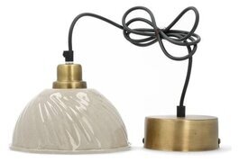 En elegant taklampa med ett mjukt, handgjort uttryck som ger rummet en varm och inbjudande känsla. Den glaserade lampskärmen i keramik kombineras fint med detaljer i metall och skapar en harmonisk balans mellan rustikt och modernt.