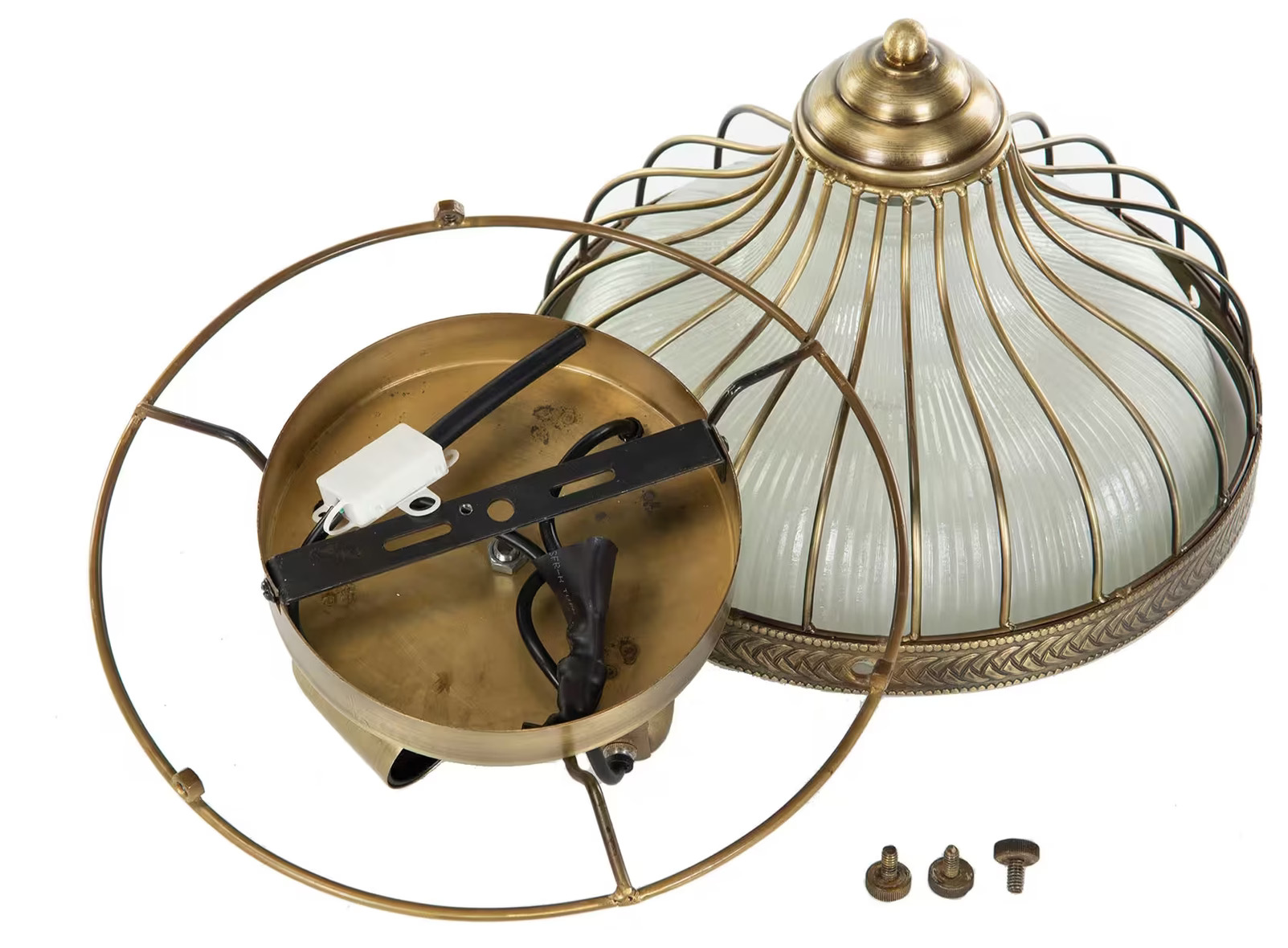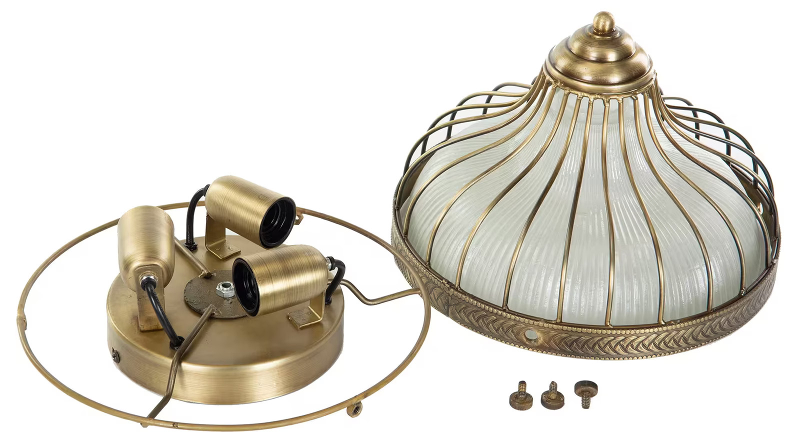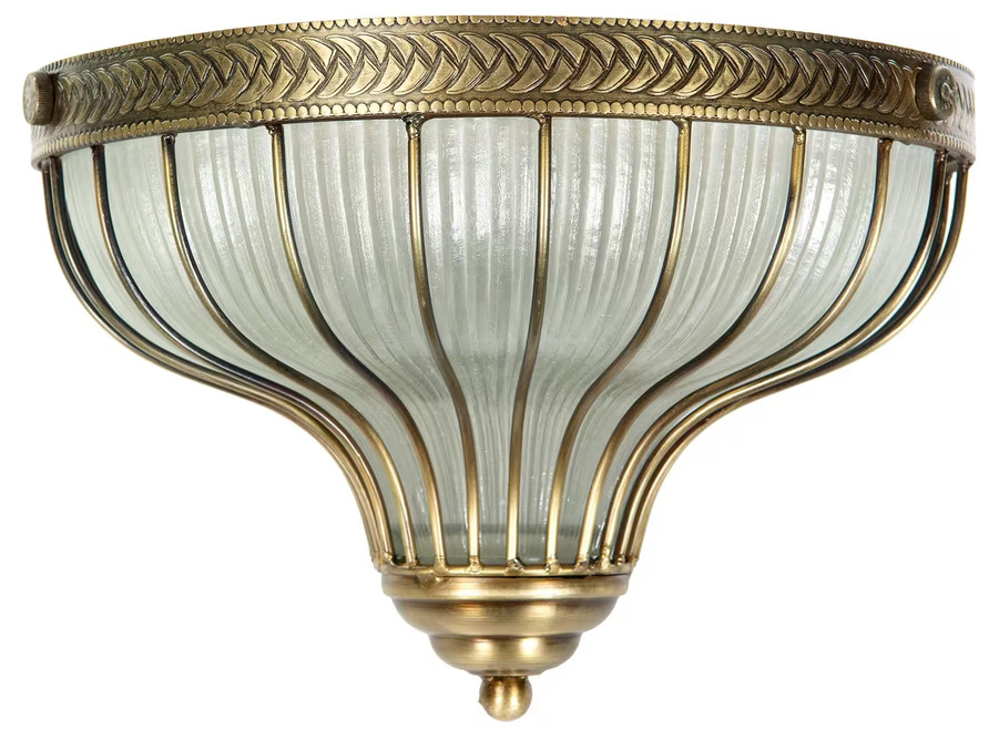 Takplafond med glaskupa samt detaljer i mässing, en vacker belysningsdetalj till husets alla rum. Lampan kan dock ej användas i badrum eller andra fuktiga utrymmen. Det kan även förekomma skillnader i färg & form då lampan är tillverkad för hand & ska ha ett lite gammalt & antikt utseende.