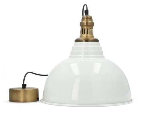 Rustik taklampa i en vacker vit nyans med mässingsdetaljer samt svart kabel. Lampan som är tillverkad för hand & unik i sitt utförande kan ha variationer i utseende, form & färg.