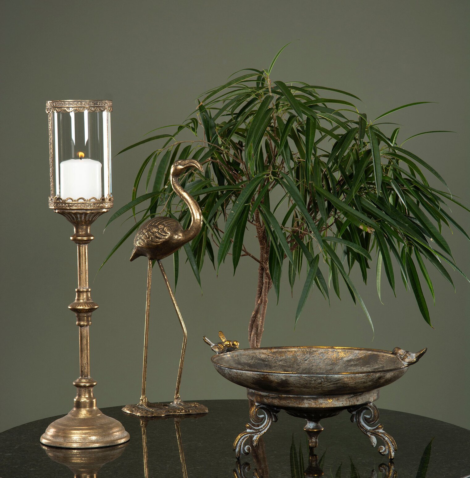 En pampig och tidlös ljusstake i metall med vacker antikmässingsfinish och glaslykta. Den höga modellen ger ett elegant intryck och skapar stämning både på matsalsbordet, i ett fönster eller som en del av en dekoration i hallen. Den dekorativa kanten på glaset ger extra charm och fångar ögat.