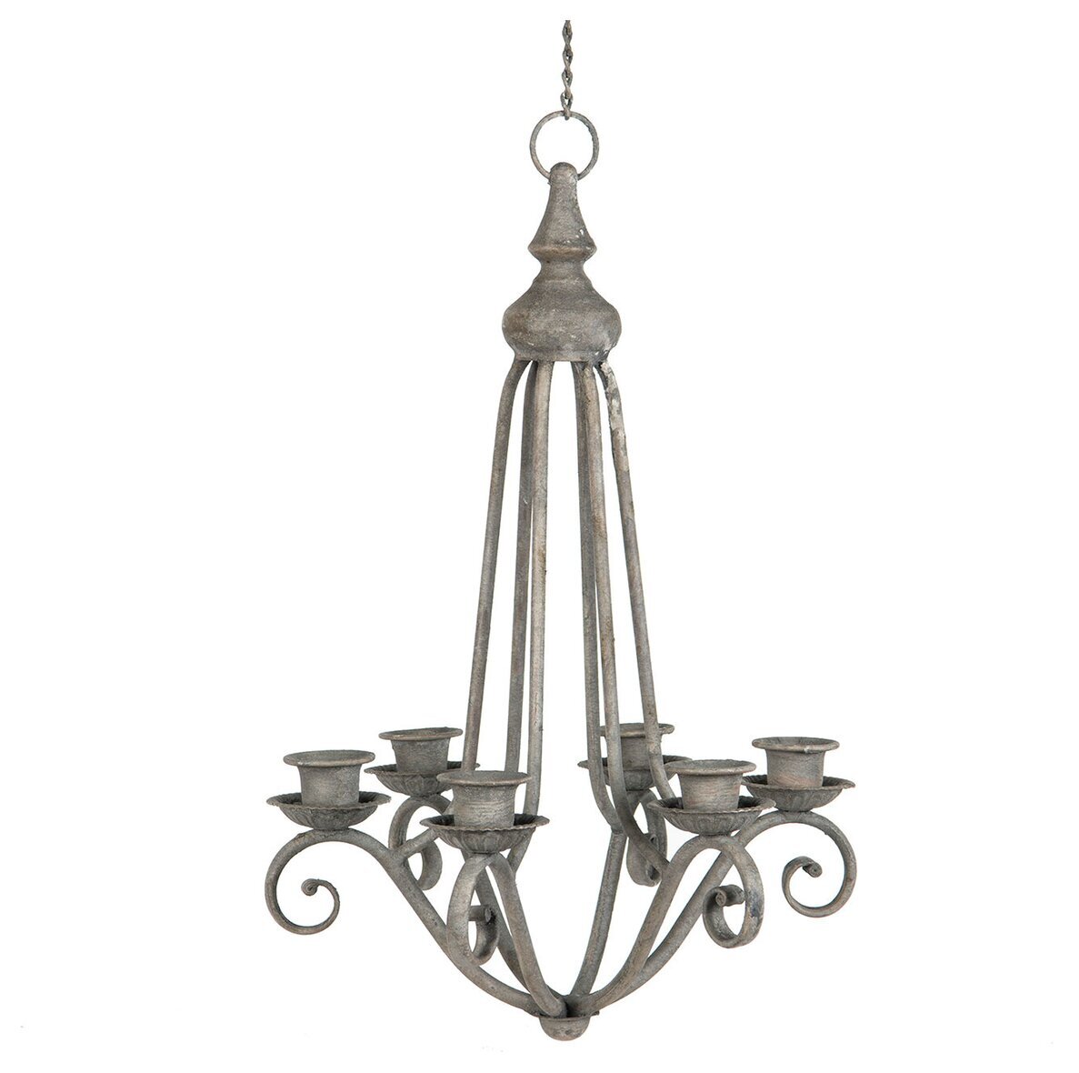 En klassisk ljuskrona i smide med plats för sex kronljus. Den rustika designen med mjukt svängda armar och antik finish gör den till ett vackert inslag i hemmet. Läs mer