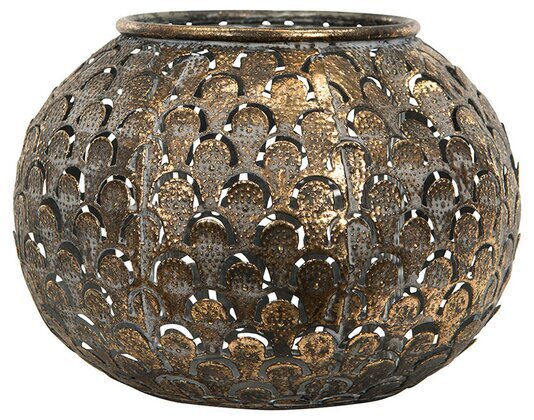 Vacker ljusstake, inkl glascylinder, med utstansat mönster i en fin antik nyans av guld/brun. Från A Lot Decoration.