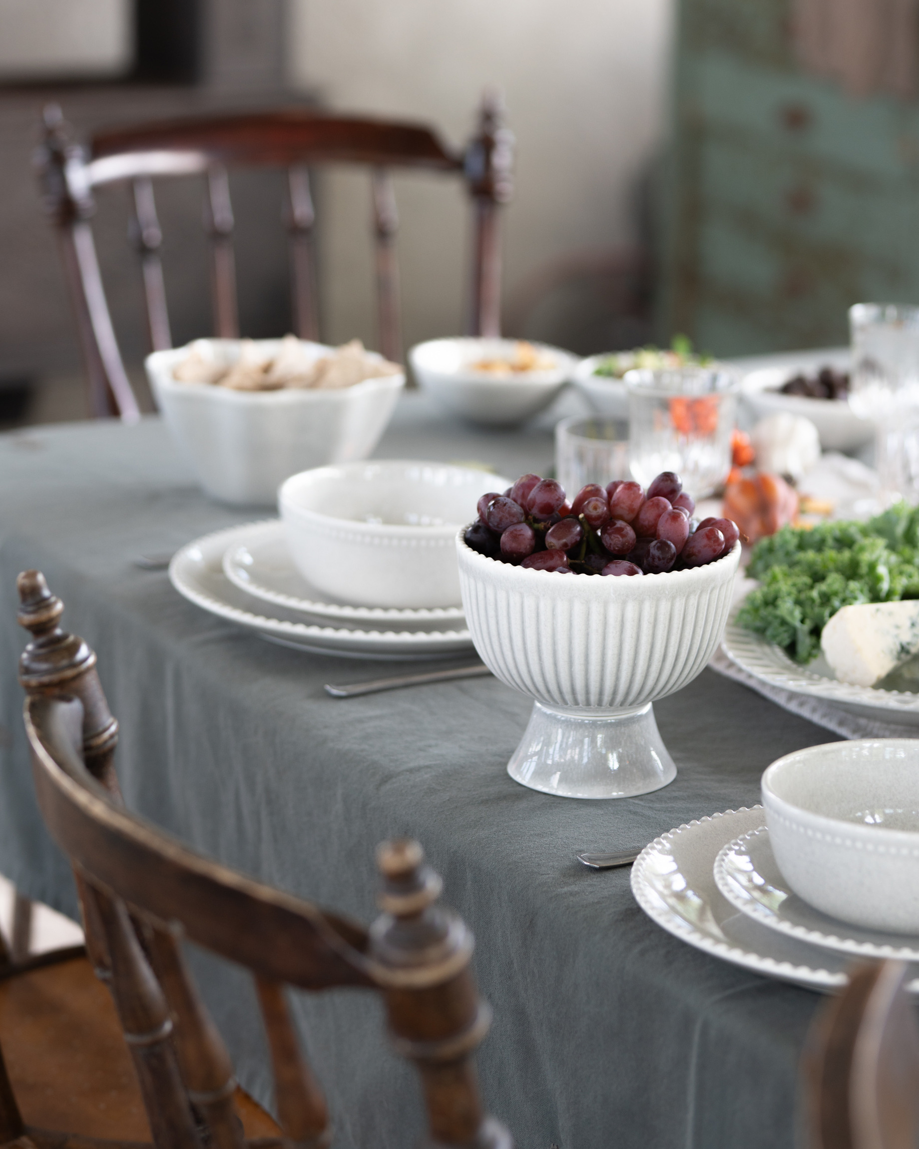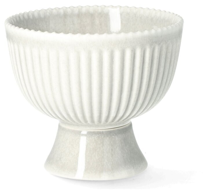 En vacker skål i beige keramik med dekorativ fot och stilfull räfflad yta. Perfekt för att servera frukt, godis eller liten sallad. Läs mer