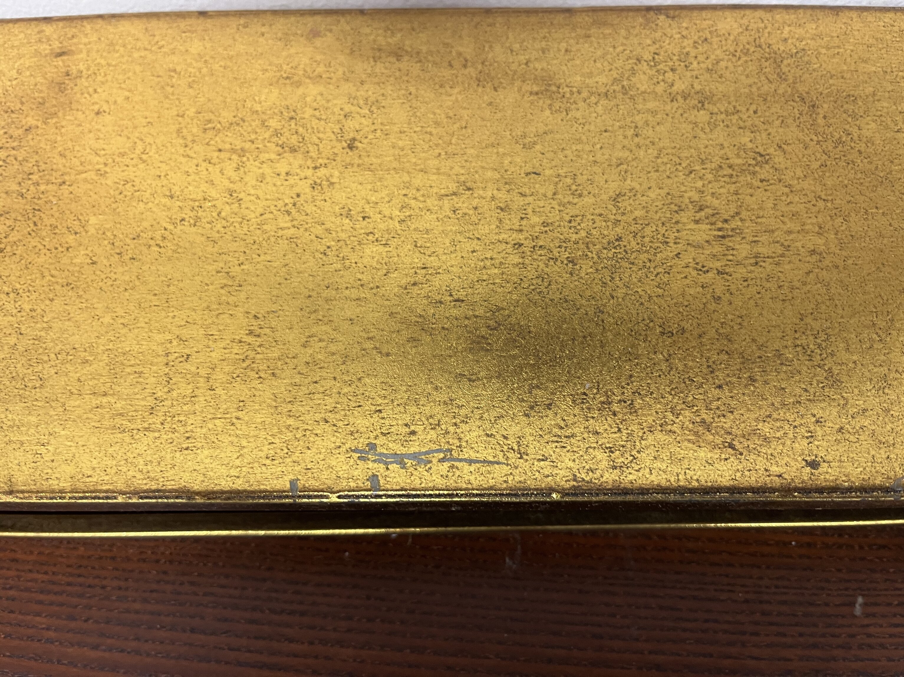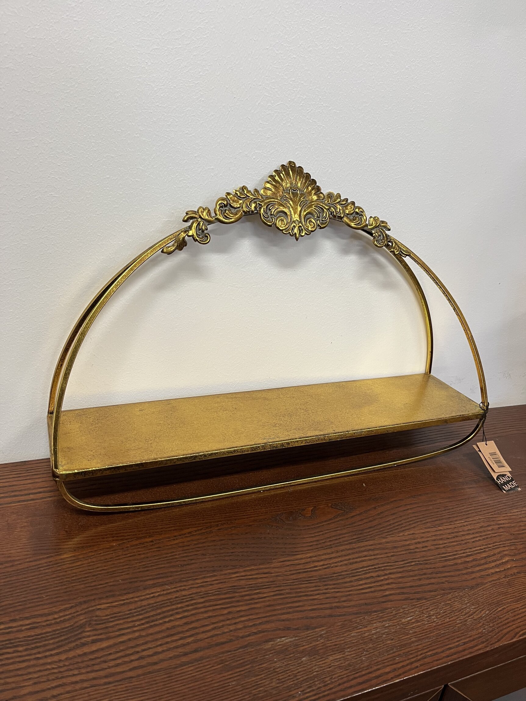 Repor i den guldfärgade ytan, främst på hyllplanets kant (se närbild).