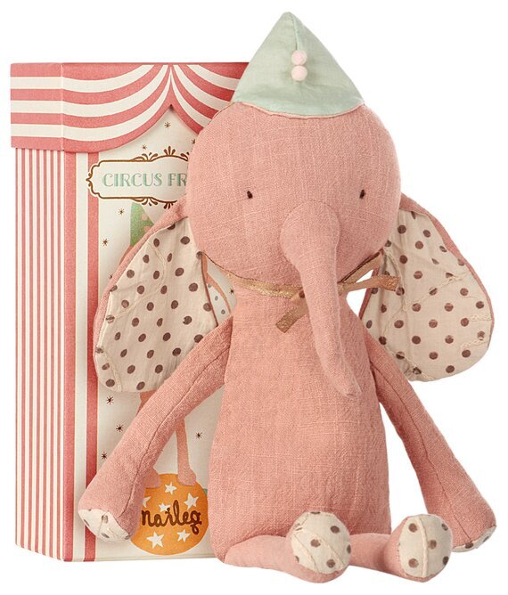 Underbart söt liten elefant från Maileg med guldhatt. Elefanten levereras i en söt circus box & passar perfekt som present till de små. Kan tvättas i 30 grader. Mått: 37 cm. Läs mer