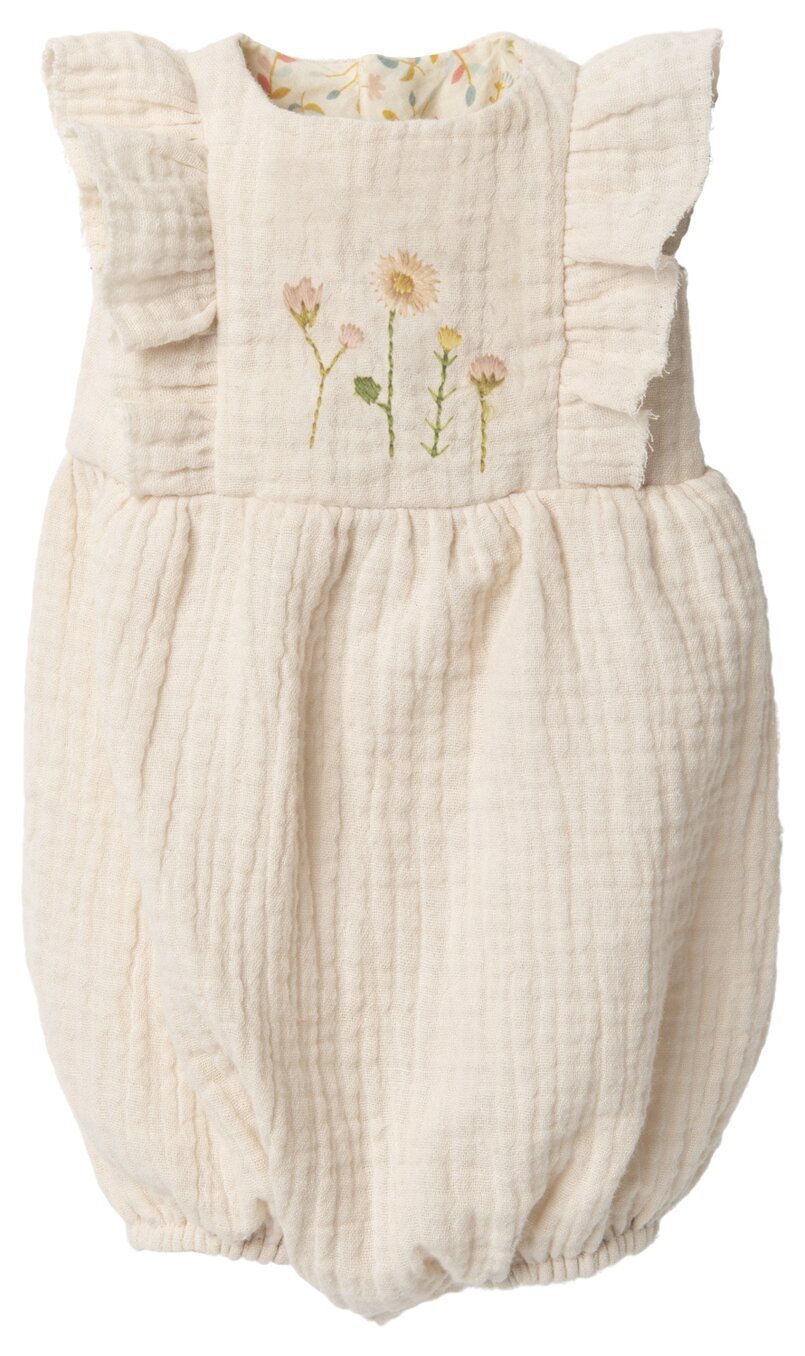 Underbart söt kanin från Maileg i storlek 5, tillverkad i mjukaste linne & bomull. Kaninen har en söt jumpsuit med vackert broderade blommor. Kan tvättas i 30 grader.
