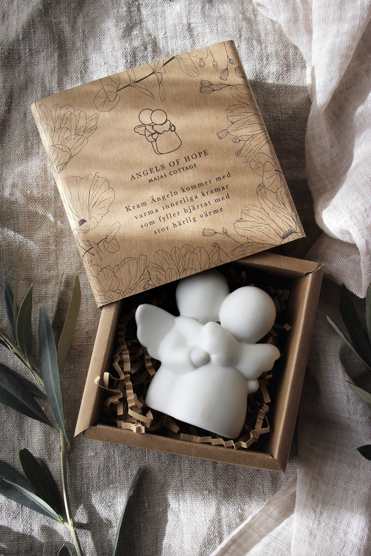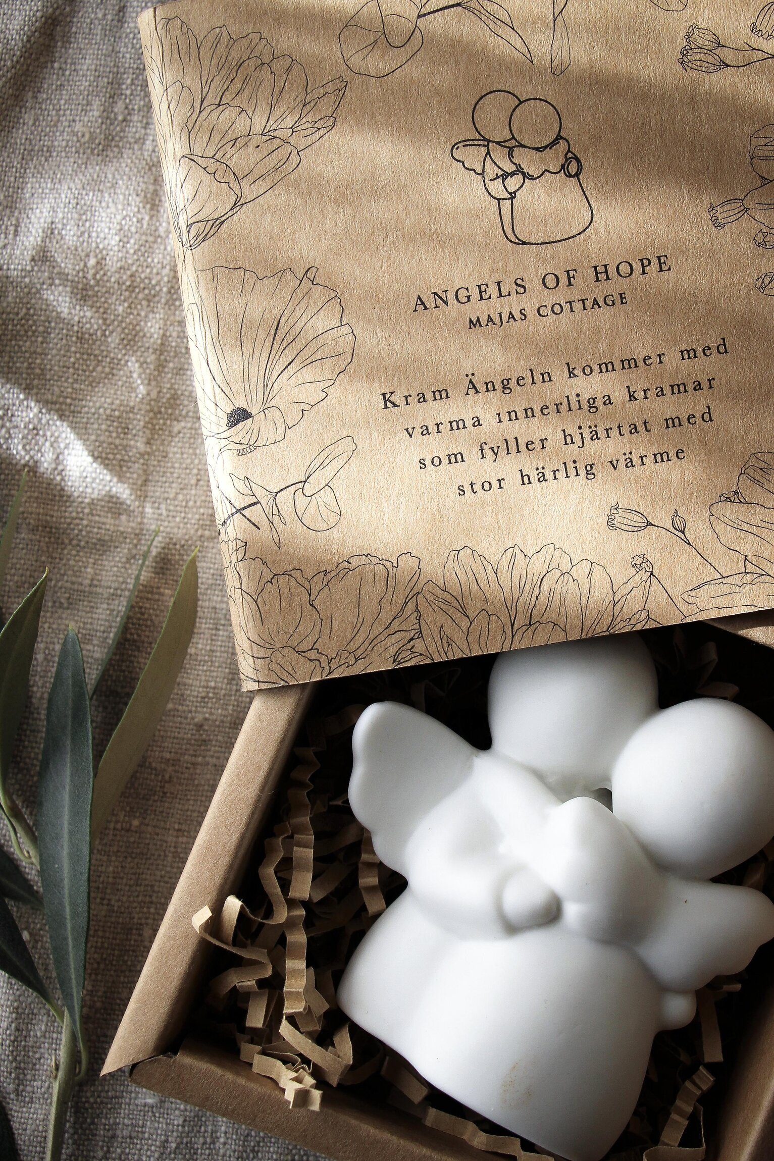 Vackra skyddsänglar i vit keramik - Kram, levereras i en fin gåvobox. Från Majas Cottage.