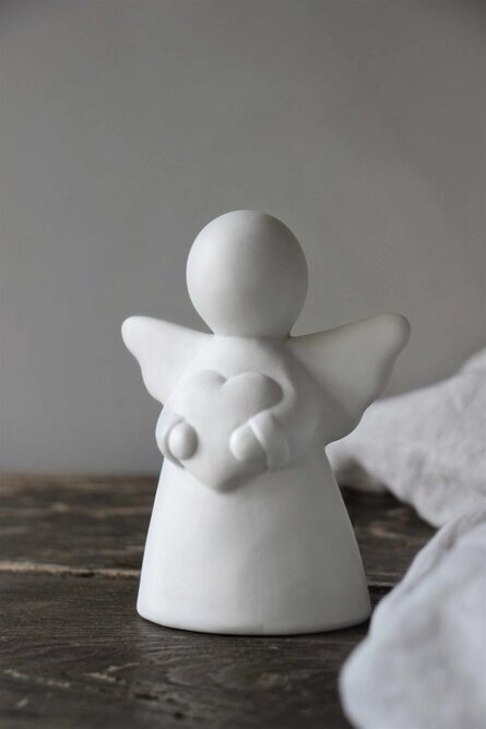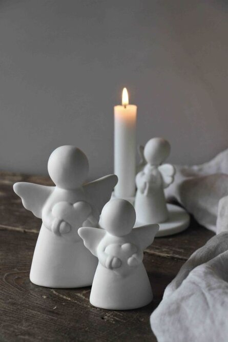 Vacker dekoration i form av en ängel i matt vit keramik, från Majas Cottage.