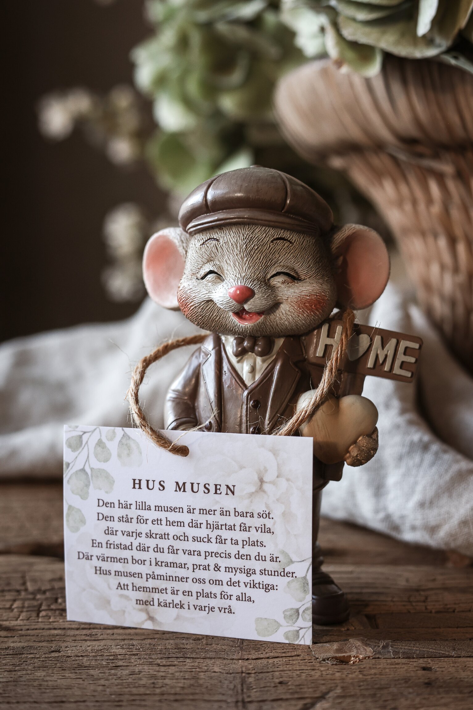 Text - Den här lilla musen är mer än bara söt. Den står för ett hem där hjärtat får vila, där varje skratt och suck får ta plats. En fristad där du får vara precis den du är. Där värmen bor i kramar, prat & mysiga stunder. Hus musen påminner oss om det viktiga: Att hemmet är en plats för alla, med kärlek i varje vrå.