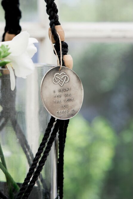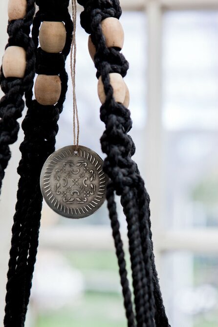 Vacker makrame med glasvas/lykta från Majas Cottage. Snygga detaljer som verkligen gör denna makrame helt underbar med dekorspännen. Läs mer