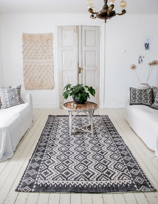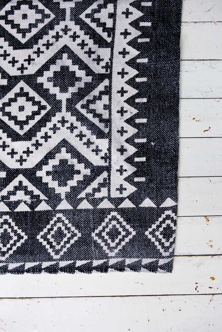 Snygg matta i 100% bomullscanvas med handpräglat mönster - alla är gjorda för hand och unika i sitt utförande. Mått: 140 x 200 cm. Läs mer