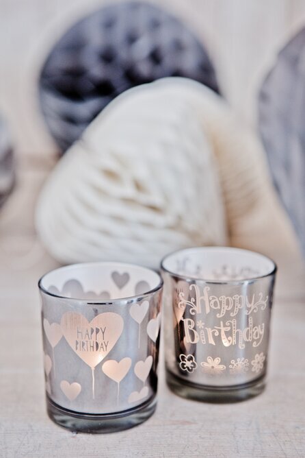 Vackra födelsedagslyktor från Majas Cottage. Lyktorna har en varm grå ton samt vit insida. Härliga att ställa fram vid födelsedagsfirande.