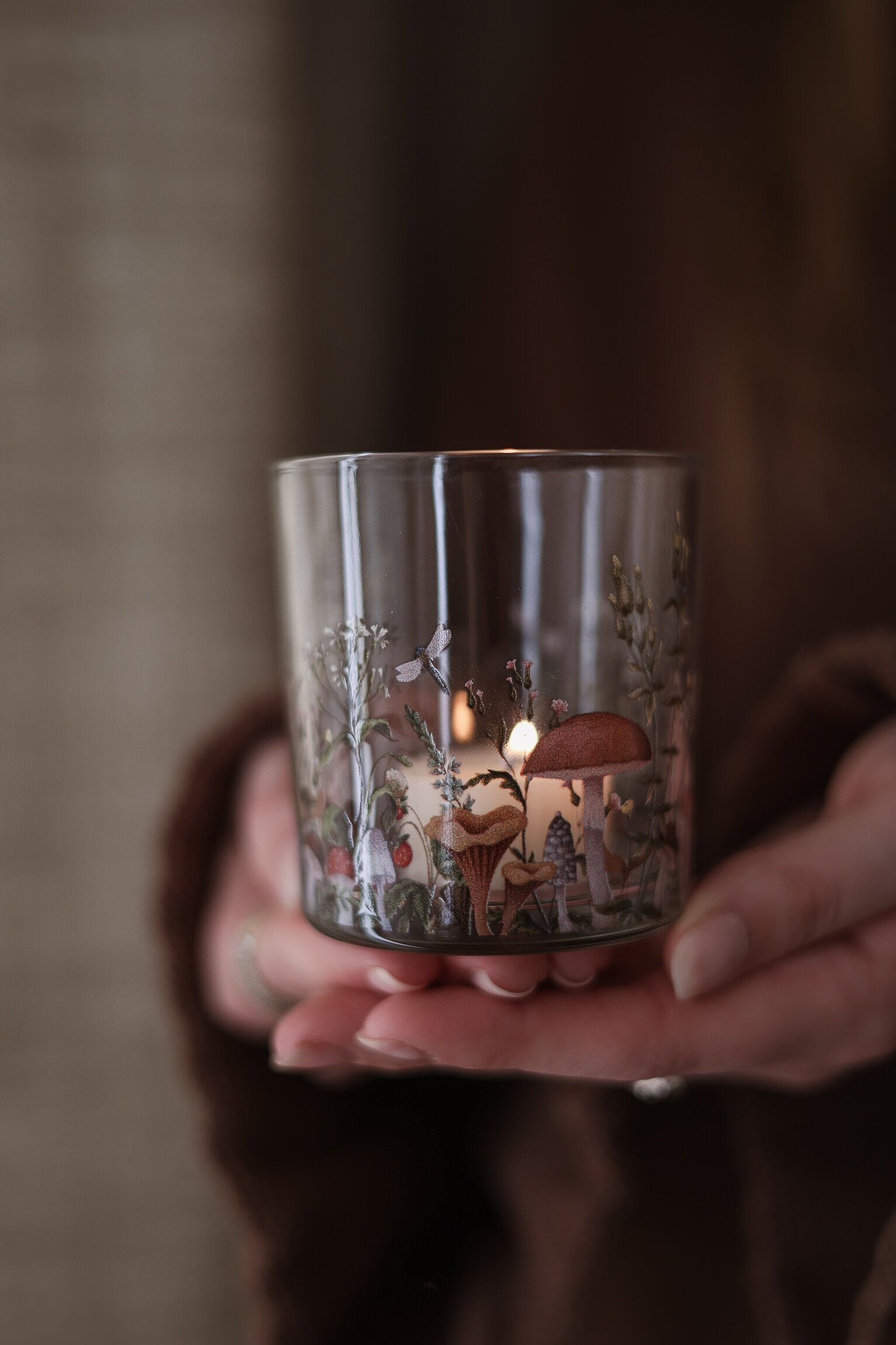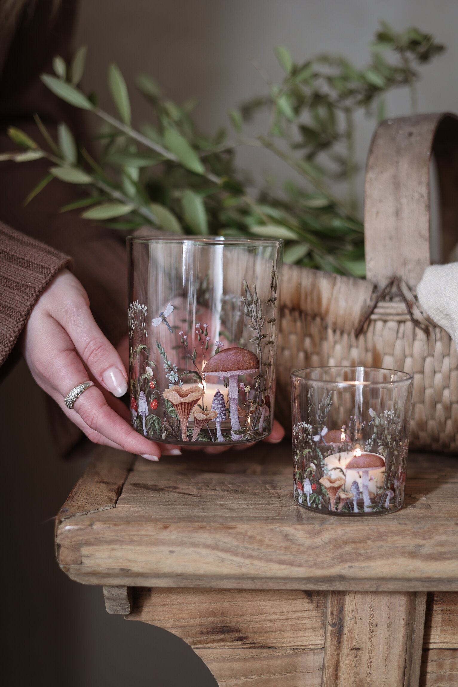 Skapa en magisk stämning i hemmet med denna vackra ljuslykta från Majas Cottage. Ljuslyktan är dekorerad med charmiga svampar, höstlöv, bär och en liten trollslända – som hämtat ur en sagoskog. Det naturinspirerade motivet gör att lyktan passar perfekt både till hösten och året runt för dig som älskar skogens mystik.