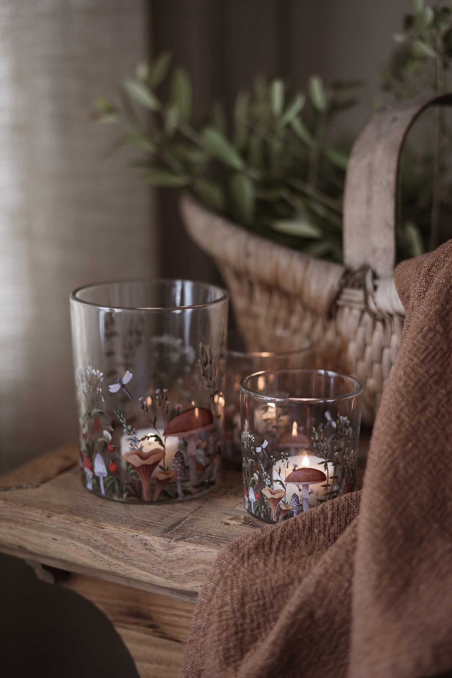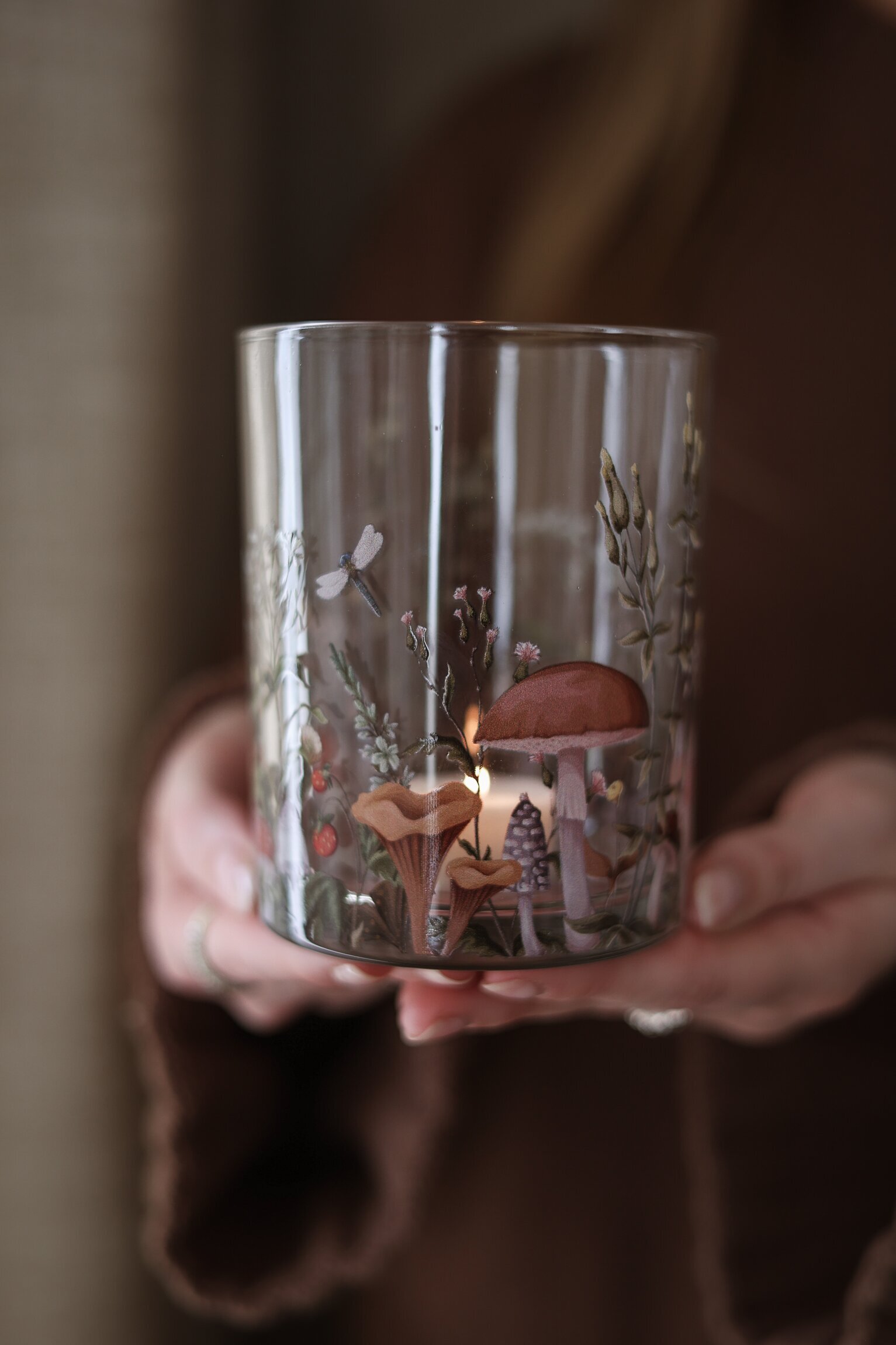 Skapa en magisk stämning i hemmet med denna vackra ljuslykta från Majas Cottage. Ljuslyktan är dekorerad med charmiga svampar, höstlöv, bär och en liten trollslända – som hämtat ur en sagoskog. Det naturinspirerade motivet gör att lyktan passar perfekt både till hösten och året runt för dig som älskar skogens mystik.