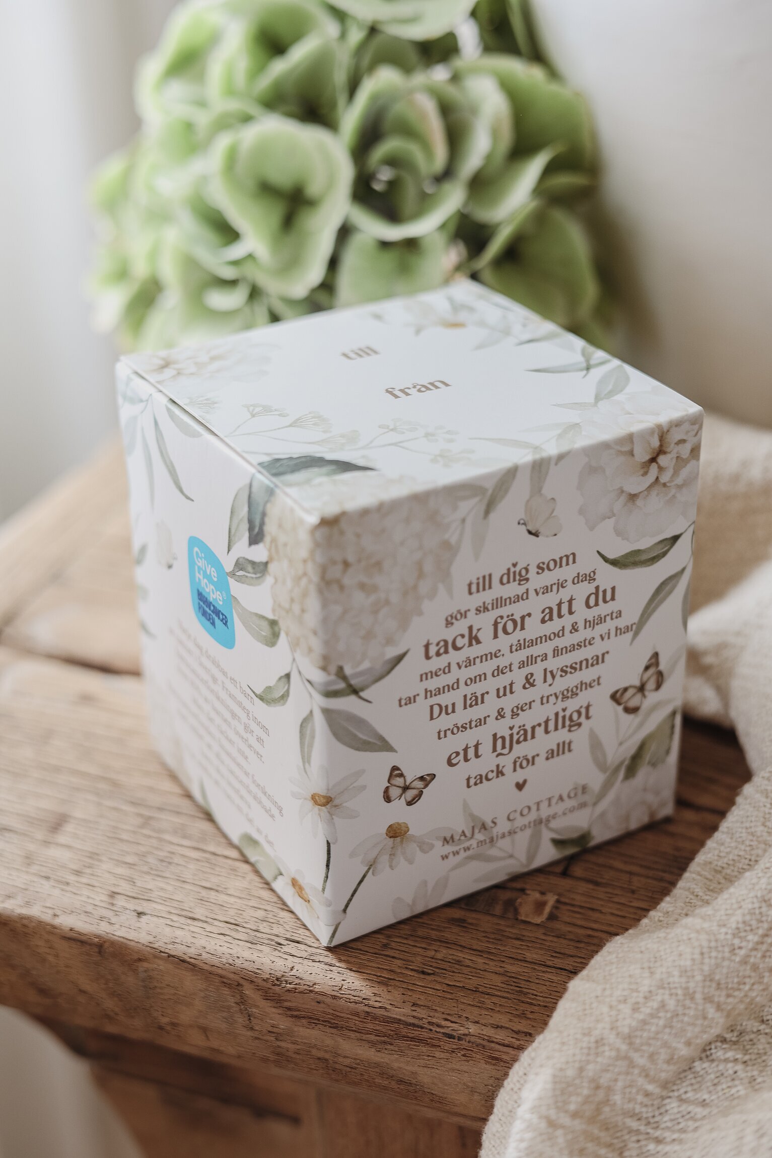 Majas Cottage har extra hjärta och själ med i företaget och att stödja Barncancerfonden är viktigt, tänk att få köpa vackra inredningssaker och veta att dom symboliserar att man bidragit till något gott samtidigt – bästa känslan och win-win för alla.