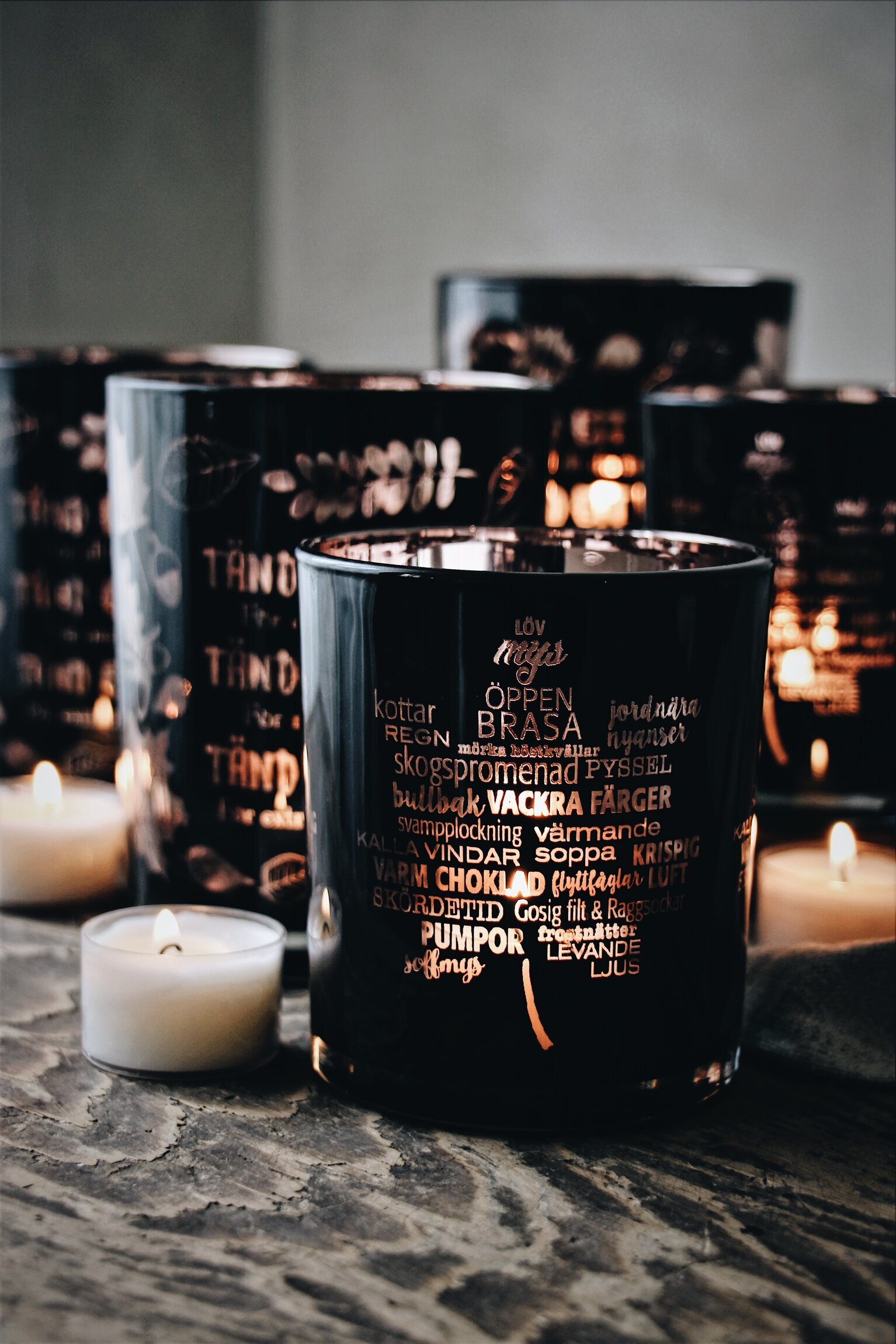 Vacker ljuslykta i svart/koppar med höstmotiv, från Majas Cottage. Läs mer