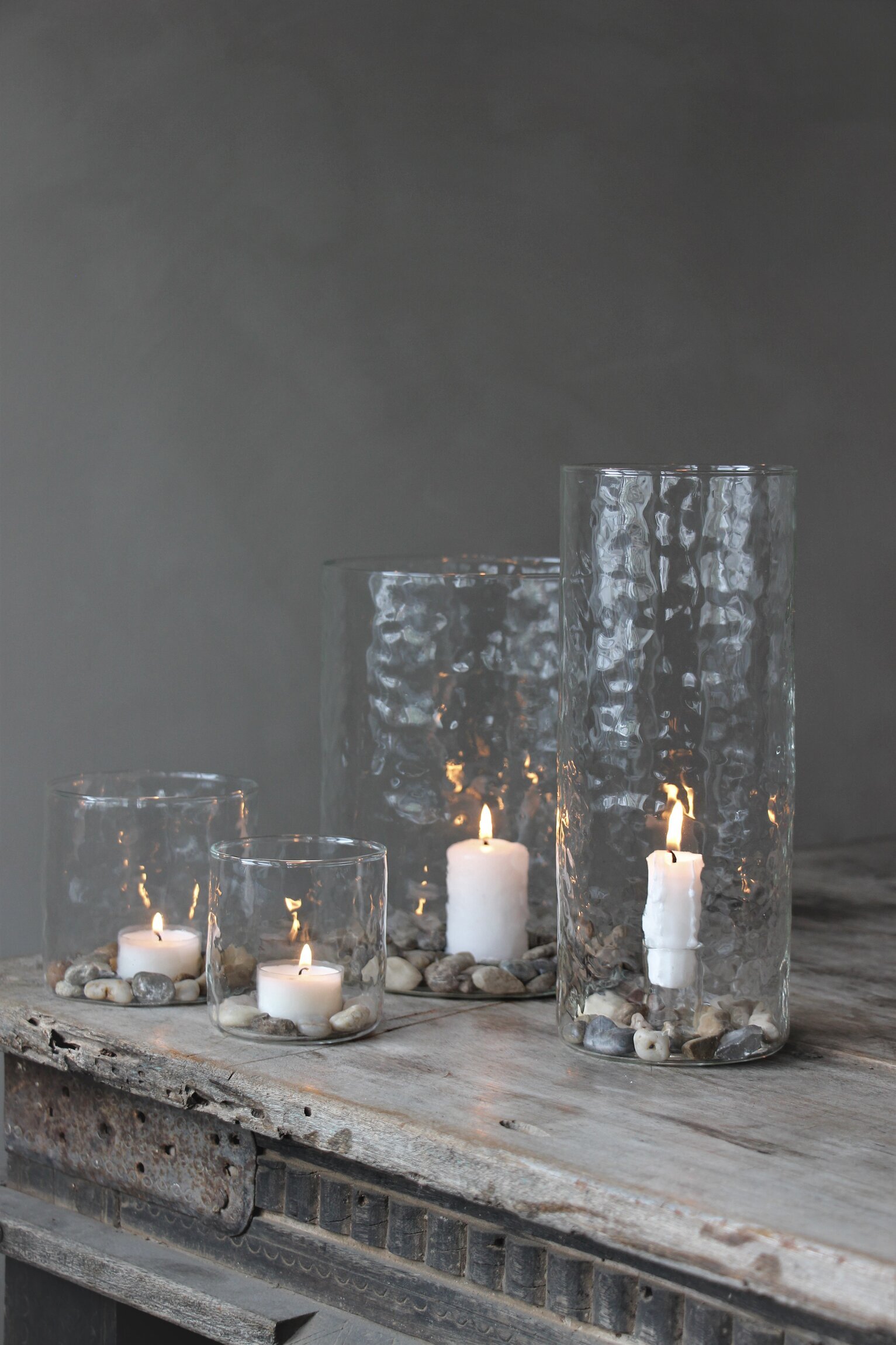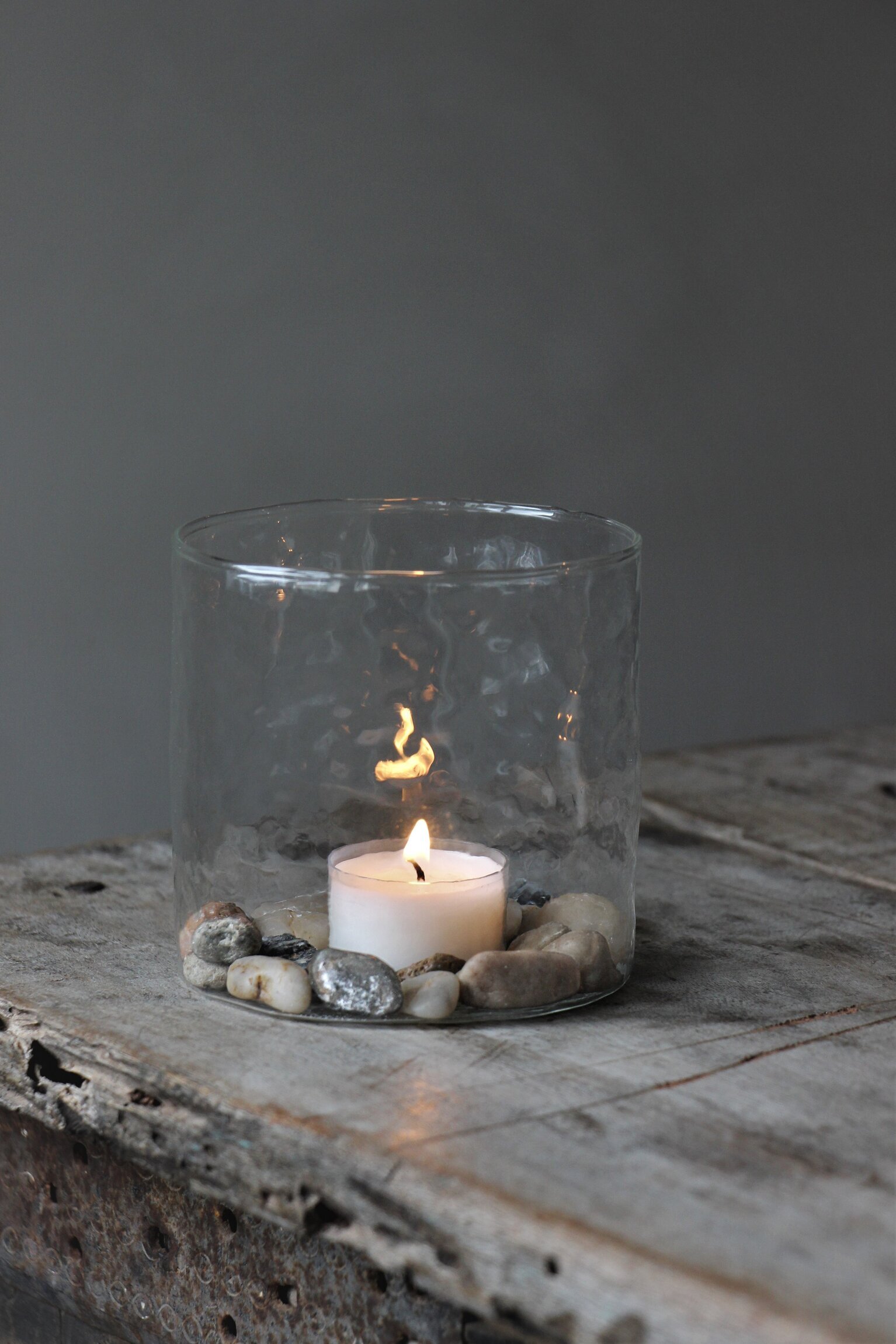 Vacker ljuslykta i hamrat klart borosilikatglas. Fin att dekorera med ljus & dekorationer efter säsong. Från Majas Cottage.