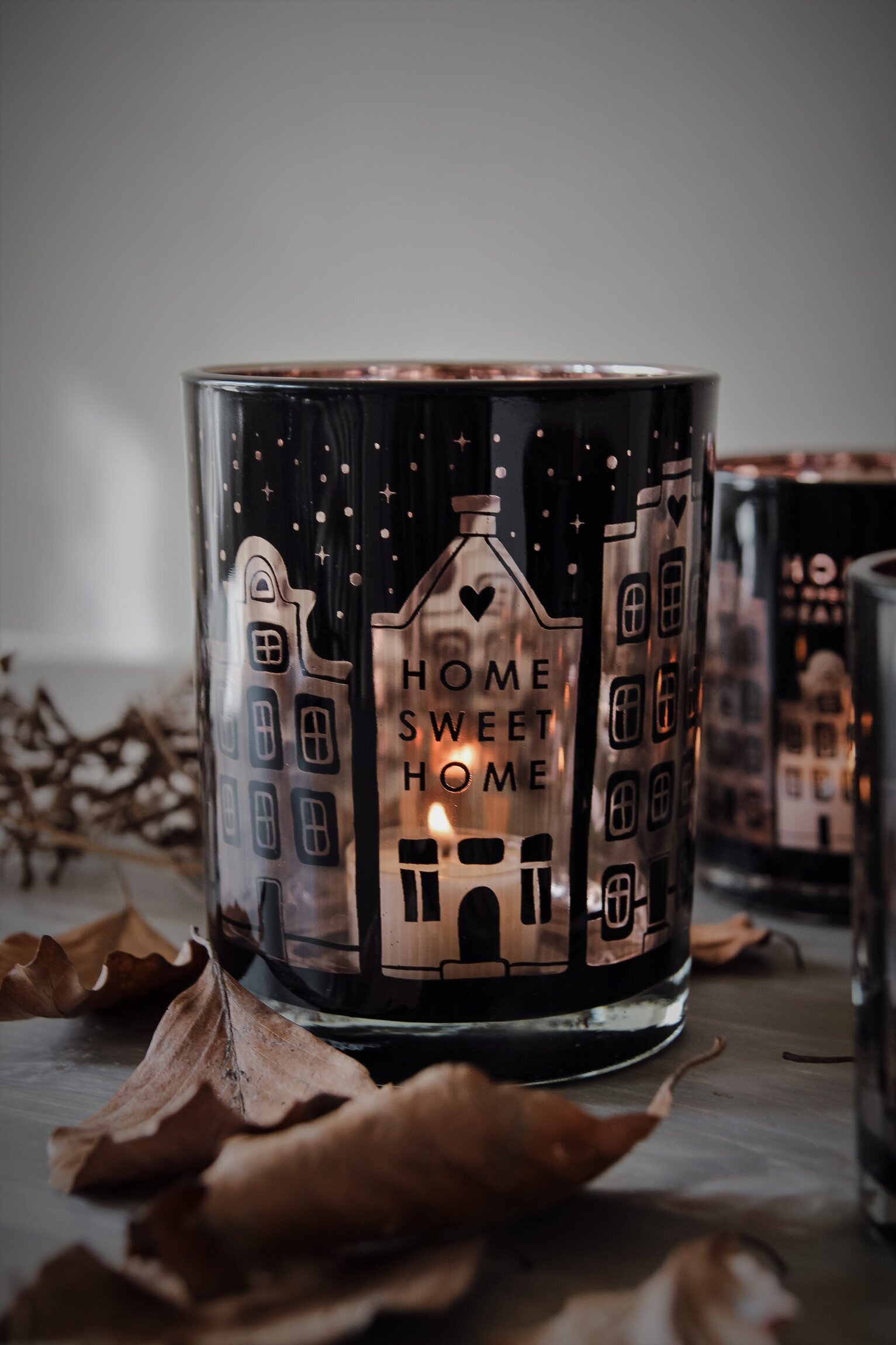 Vacker ljuslykta i en fin nyans av svart & koppar samt text - Home is my happy place... Läs mer