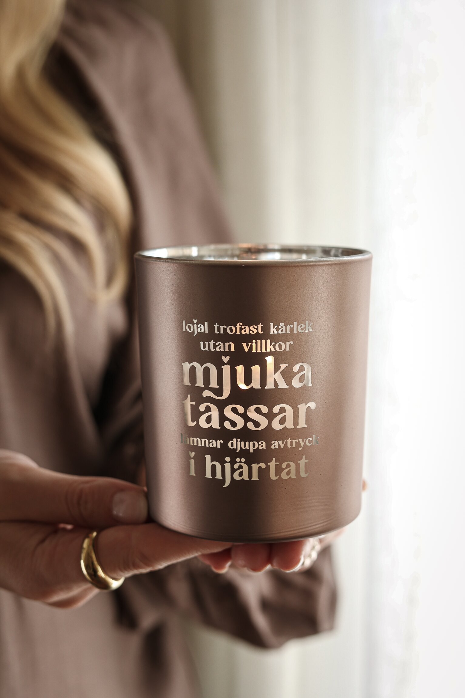 Denna stämningsfulla ljuslykta blir en varm detalj i hemmet och en uppskattad gåva med ett budskap som berör. Lyktan har en dekorativ, sprayad finish som bränns in i glaset, och eftersom tillverkningen sker i flera moment kan mindre variationer förekomma, som små ojämnheter i ytan eller enstaka luftbubblor. Det är en naturlig del av processen som gör varje lykta unik och utgör inget fel.