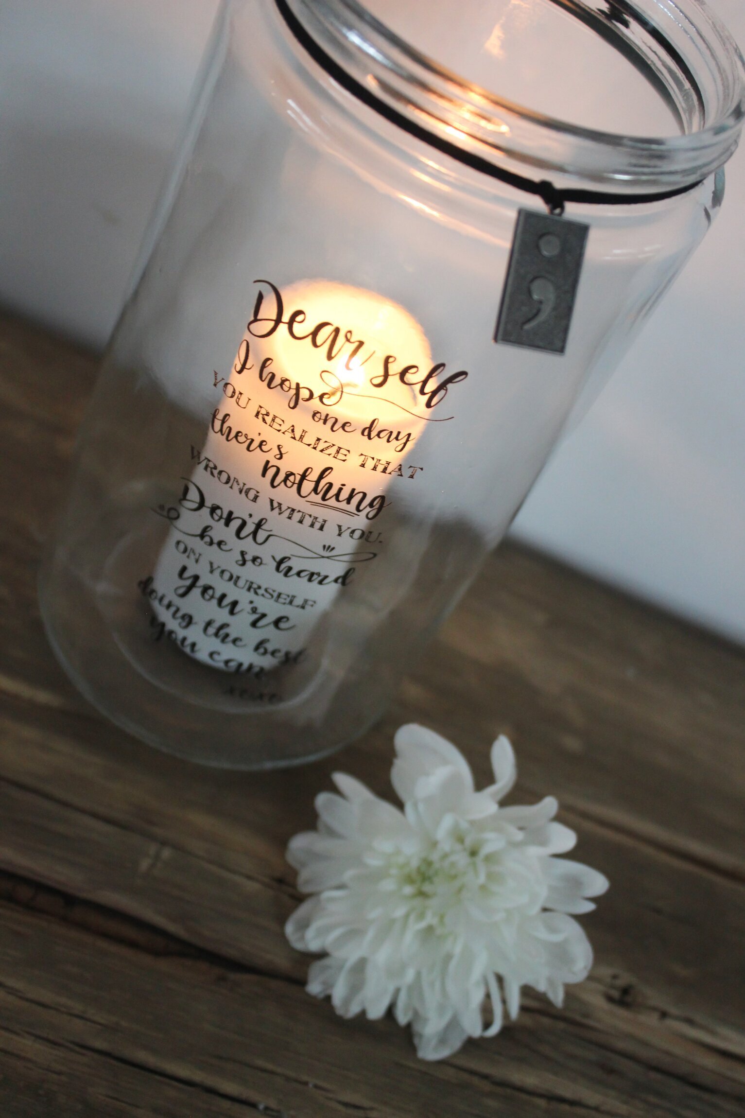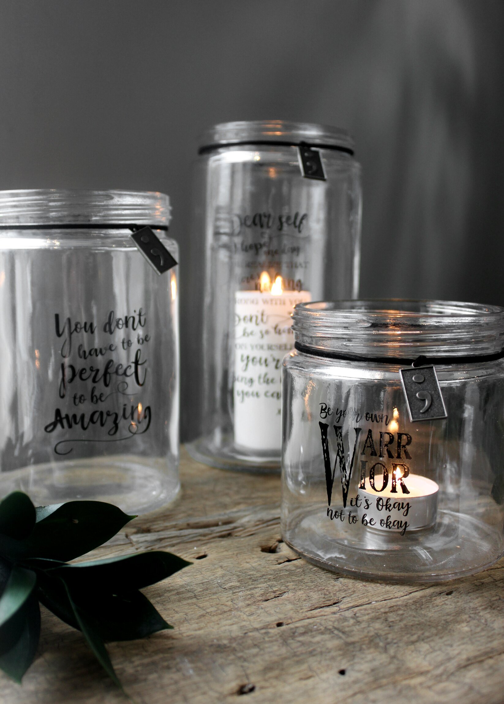 Vacker lykta i klarglas med svart text, passar även fint som vas, säljs med förmån till Suicide Zero som arbetar för att minska antalet självmord.