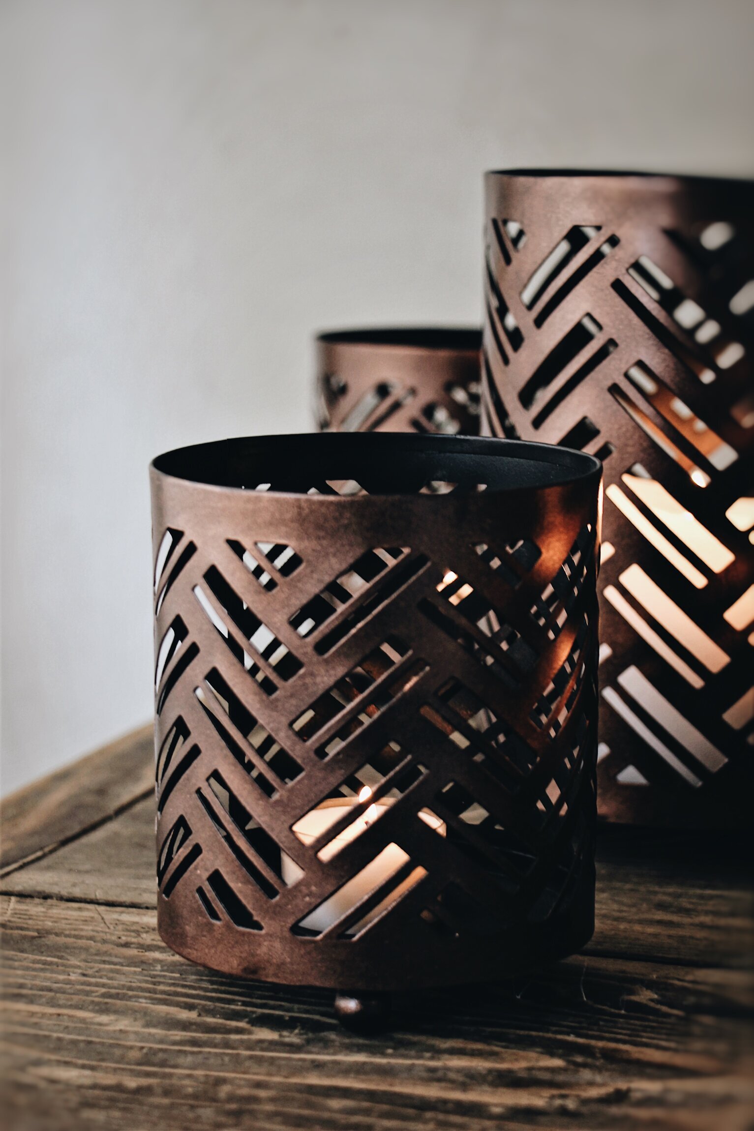 Vacker ljuslykta med fiskbensmönster, finns i 2 olika storlekar. Från Majas Cottage. Läs mer