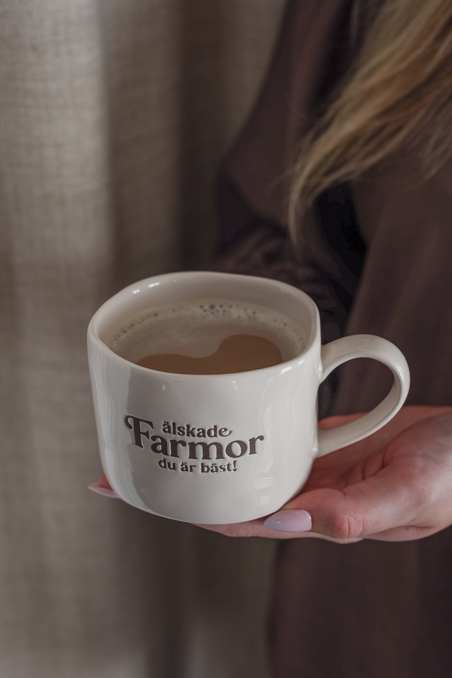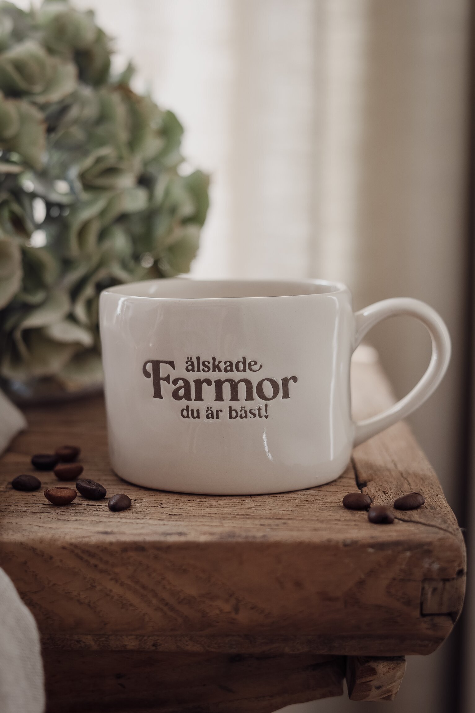 Mugg i stengods med texten Älskade farmor – en varm och omtänksam present till den du tycker extra mycket om. Den stilrena designen gör muggen lika fin till vardags som till mysiga fikastunder, och den passar perfekt att ge bort vid födelsedag eller bara som en liten överraskning.